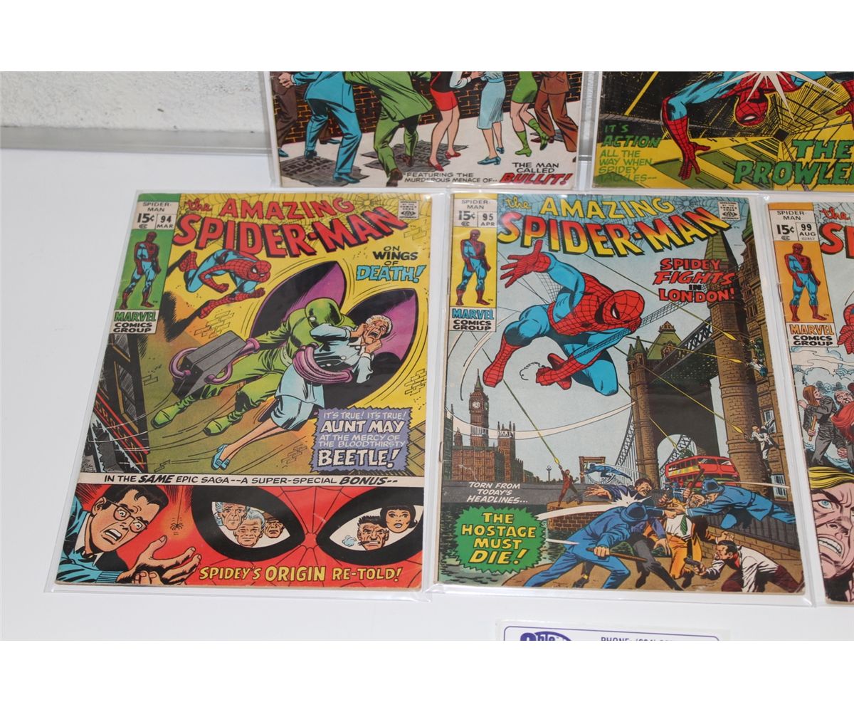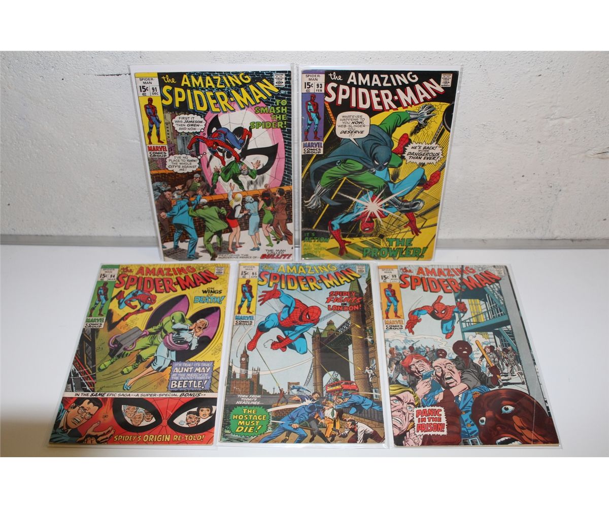 AMAZING SPIDER-MAN # 91, 93-95 & 99 (1970-71) #94 - ORIGIN RETOLD. SOLID MID GRADE AVERAGE- NICE COPIES, 5 BOOKS TOTAL