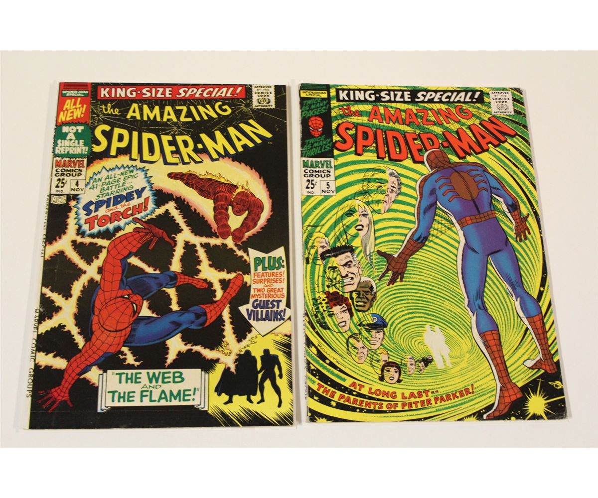 AMAZING SPIDER-MAN ANNUALS #4 & 5 ( 1967-68) #4 - VS. HUMAN TORCH - #5 - VS. RED SKULL. SHARP MID TO HIGH MID GRADE, GLOSSY, WHITE & SUPPLE. EXCELLENT EXAMPLES!