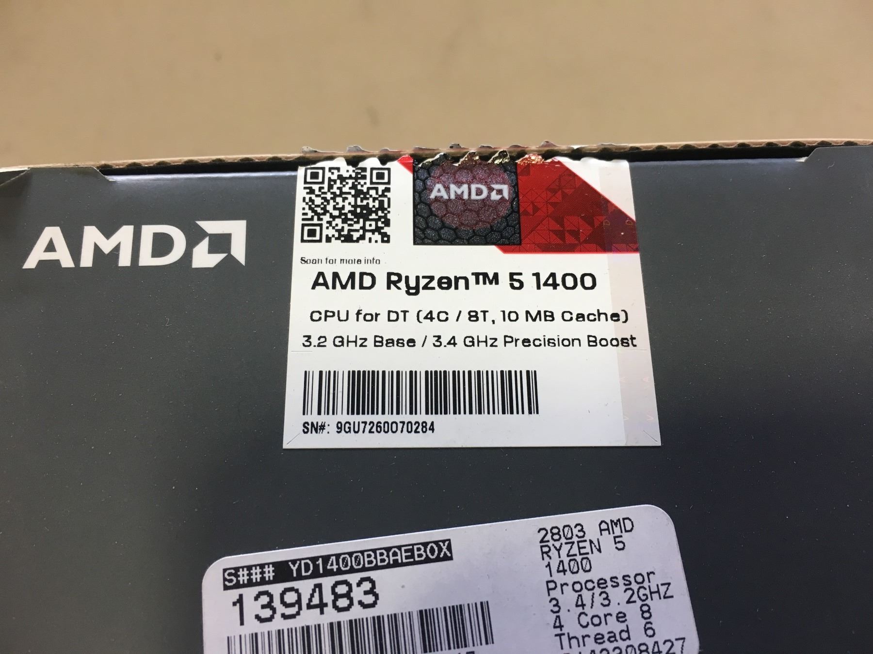 AMD RYZEN 5 1400 3.2 GHZ WITH 3.4 GHZ BOOST PROCESSOR