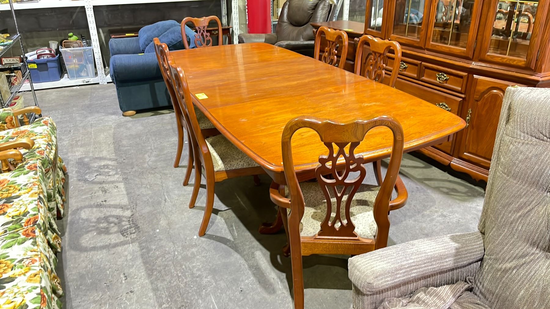 AMERICAN DREW WOODEN DINING TABLE WITH 2 LEAVES & 6 CHAIRS