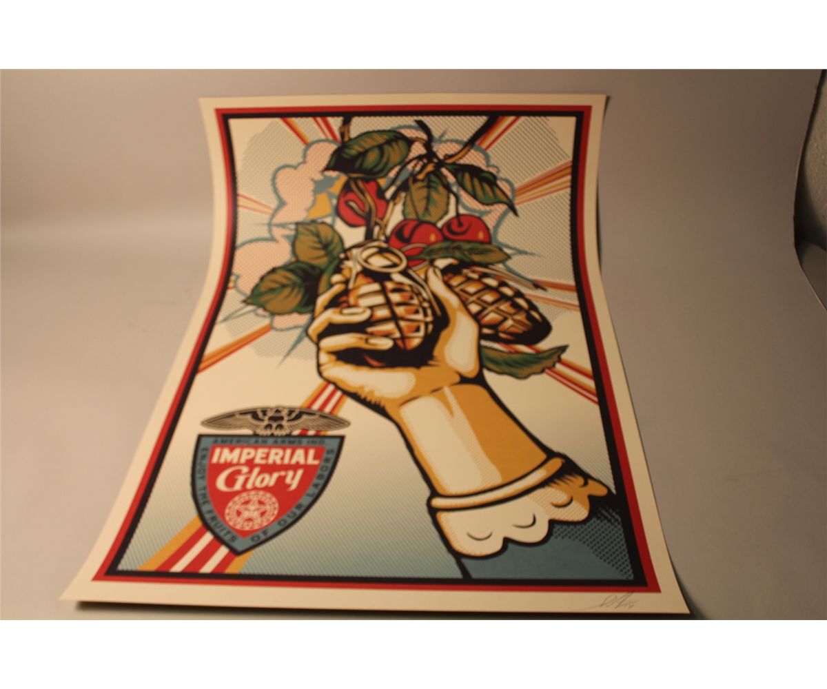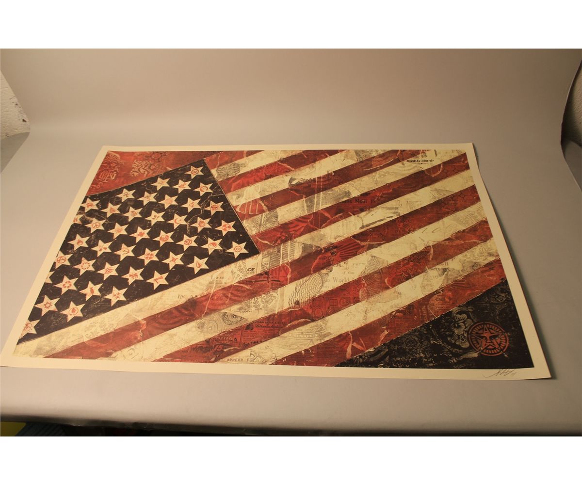 "AMERICAN FLAG" & "IMPERIAL GLORY" SHEPHERD FAIREY, SIGNED PRINTS FAMOUS FOR HIS DESIGN OF PRESIDENT BARACK OBAMA'S PRESIDENTIAL "HOPE","CHANGE" & "PROGRESS" POSTERS