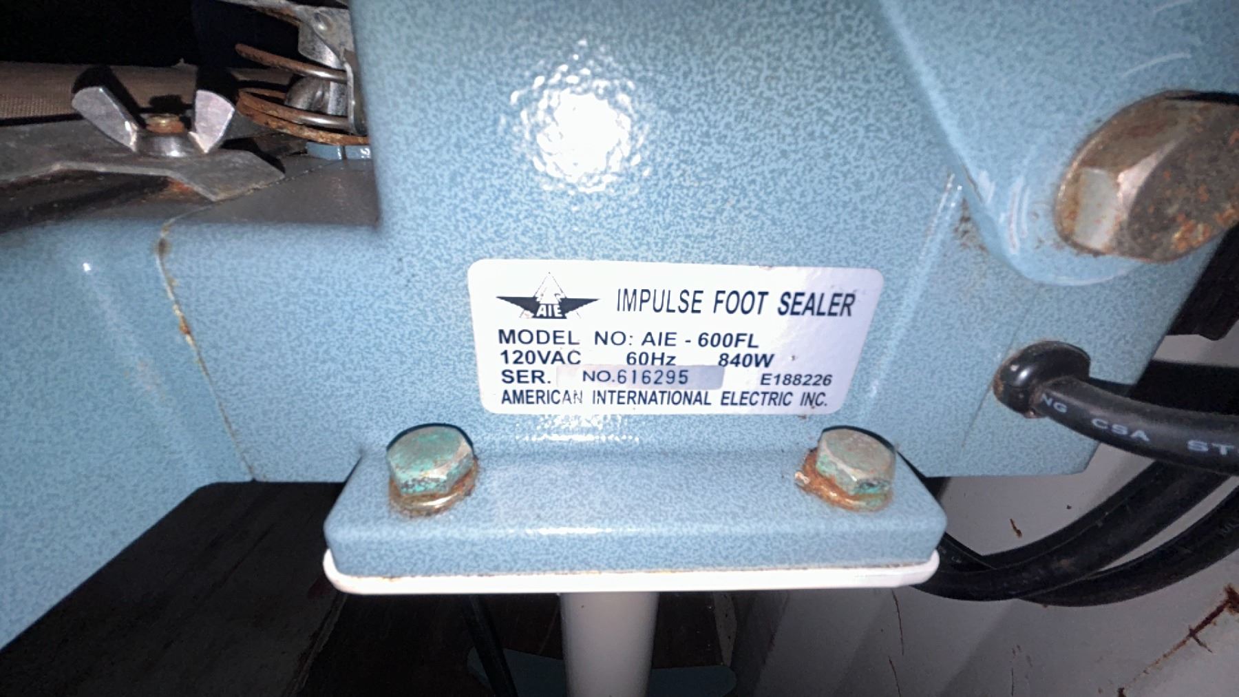 AMERICAN INTERNATIONAL ELECTRIC IMPULSE FOOT SEALER MODEL 600FL LOCATED IN CONTAINER