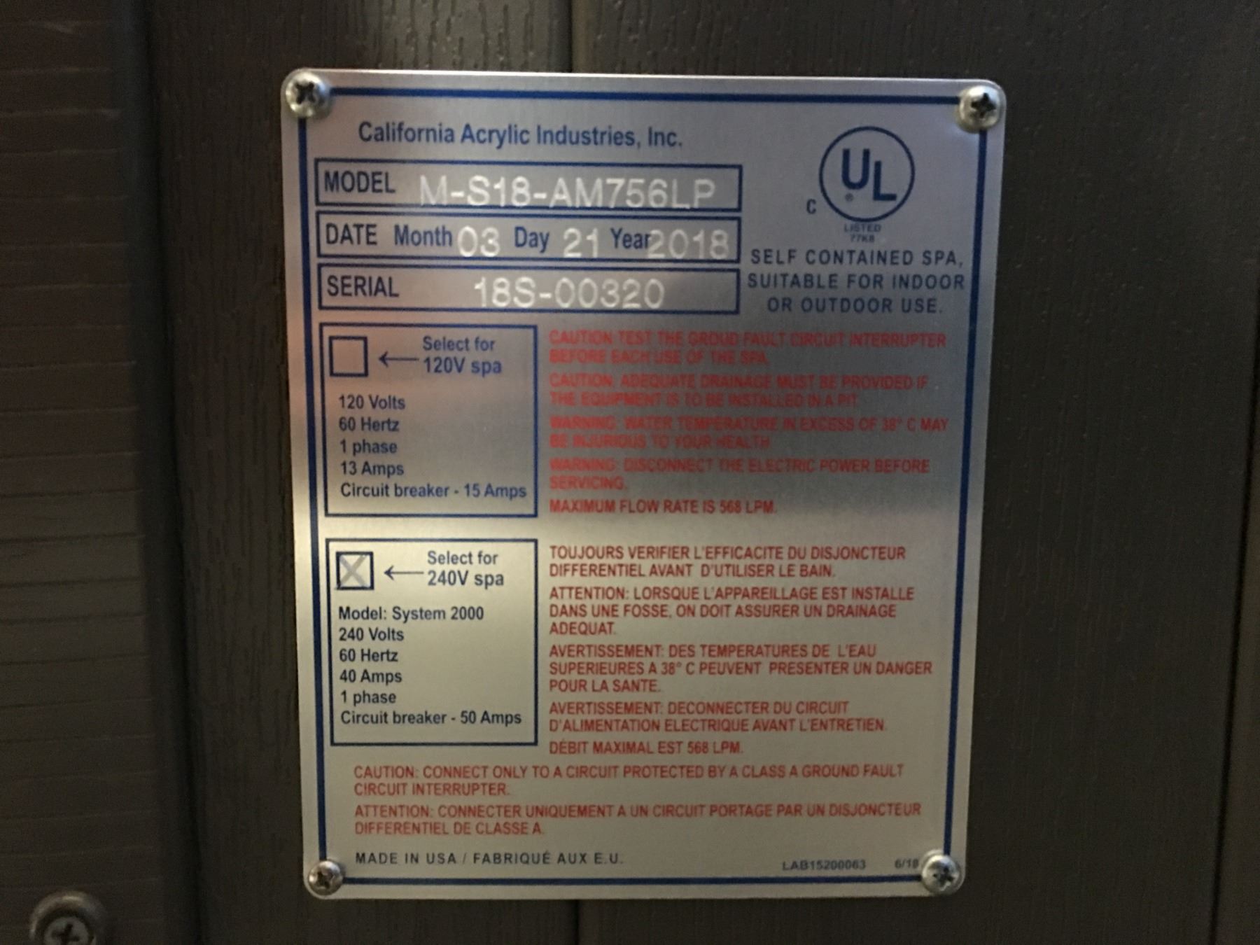AMERICAN SPAS HOT TUB, PREMIUM SERIES, PACIFIC RIM 84" X 84" ACRY, 3 CONTOUR PILLOWS, 56 HALO SS JETS, GATE VALVE, 50 SQFT FILTER, 1X 6BHP 1 SPD 60HZ, 1X 6BHP 2 SPD 60HZ, HYDROCLEAR OZONATOR, LED HYDRO STREAMER WATERFALL, LED SPA LIGHT, FREEDOM BLUETOOTH SOUND SYSTEM, POWER