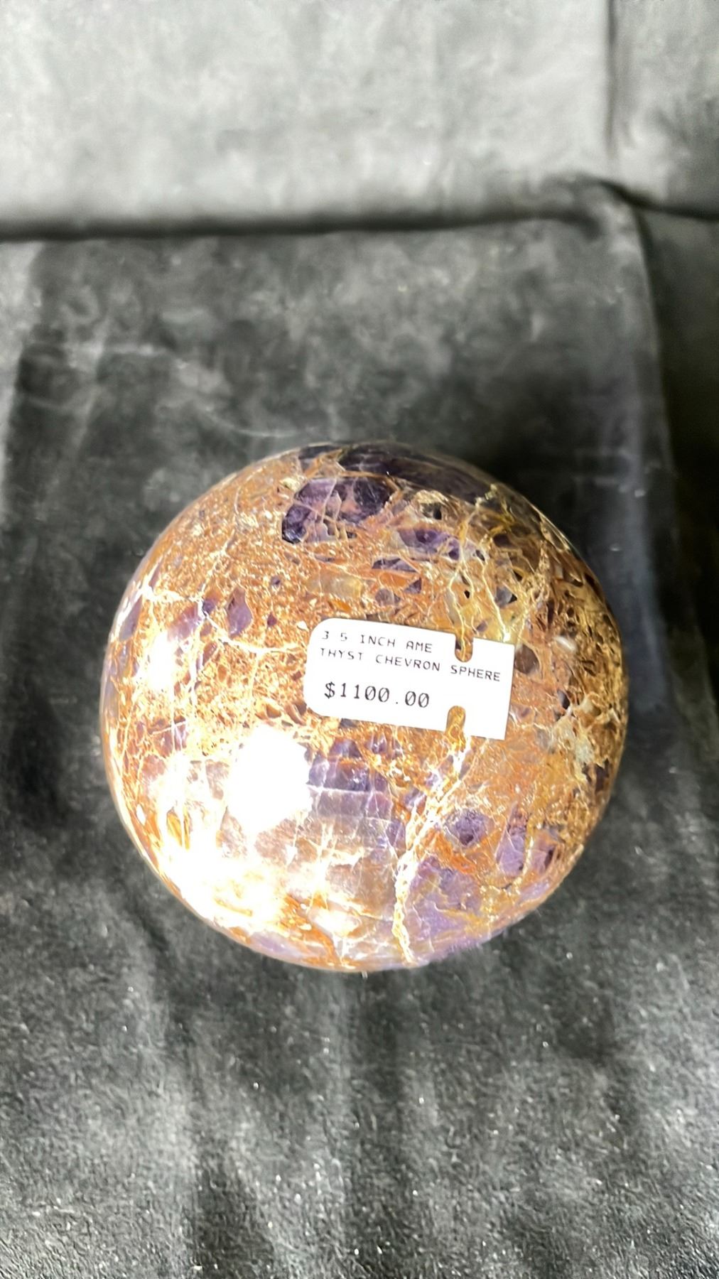 AMETHYST CHEVRON SPHERE 3.5" RETAIL $1100