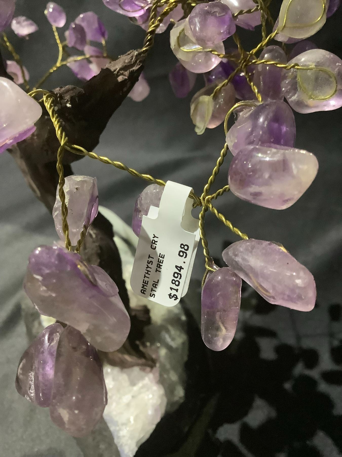 AMETHYST CRYSTAL TREE ON AMETHYST GEODE BASE APPROX 10" TALL- RETAIL $1894.98