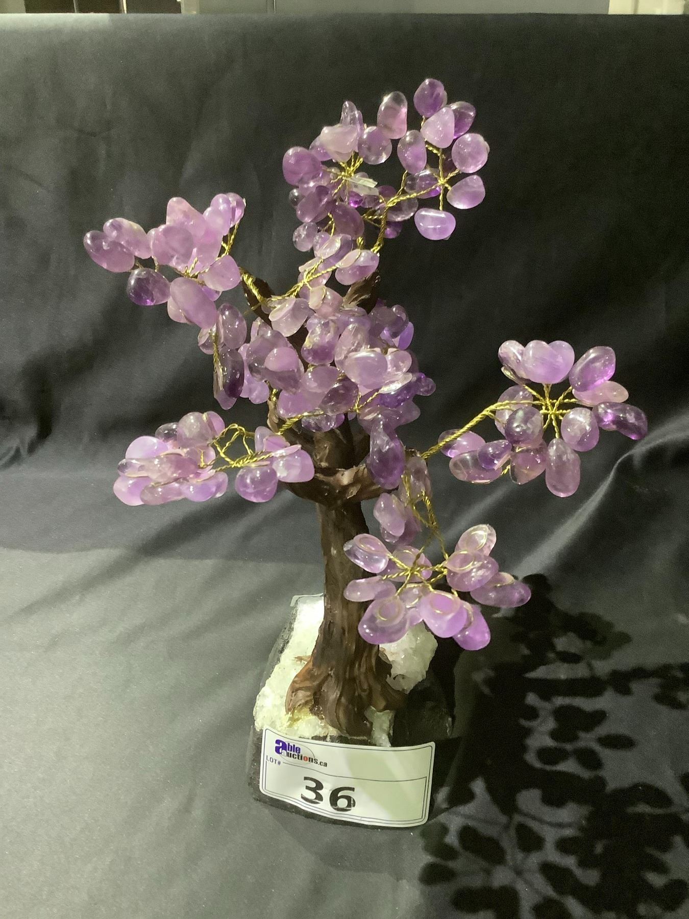 AMETHYST CRYSTAL TREE ON CRYSTAL GEODE BASE APPROX 15" TALL- RETAIL $2494.98