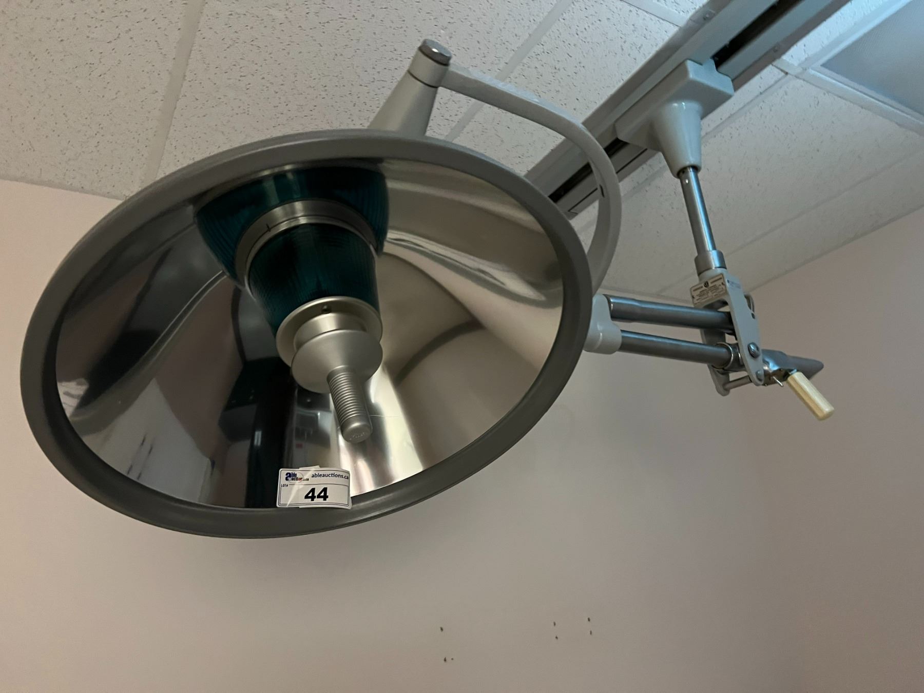 AMSCO SURGICAL LIGHT MODEL E22T5 -120V - ARTICULATING - WITH OVERHEAD TRACK - MUST BE REMOVED FROM CEILING