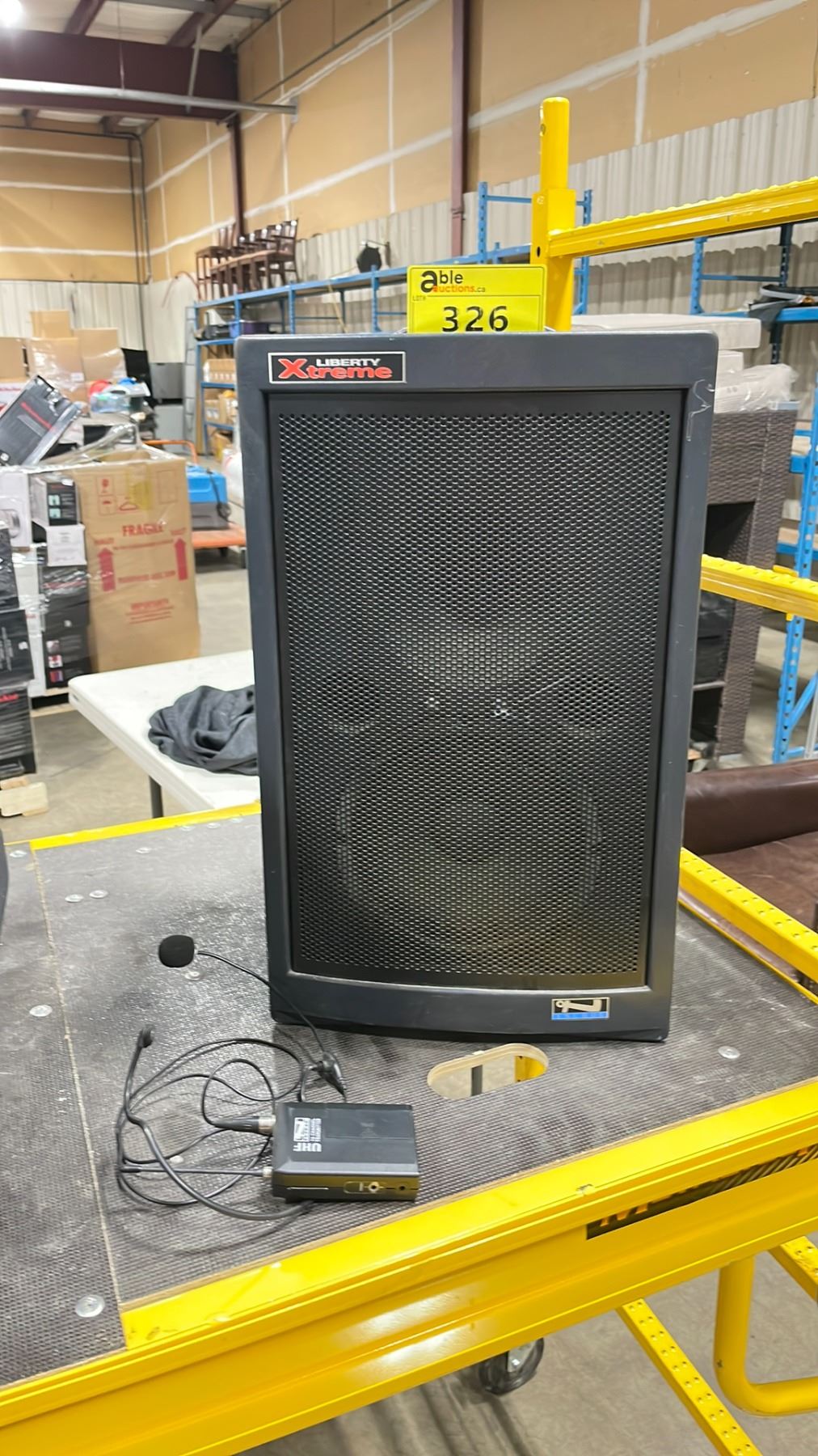 ANCHOR AUDIO LIBERTY XTREME PROFESSIONAL PORTABLE PROJECTION LOUDSPEAKER WITH POWER CABLE & ANCHOR UHF 16 CHANNEL WIRELESS BELT PACK WITH HEADSET