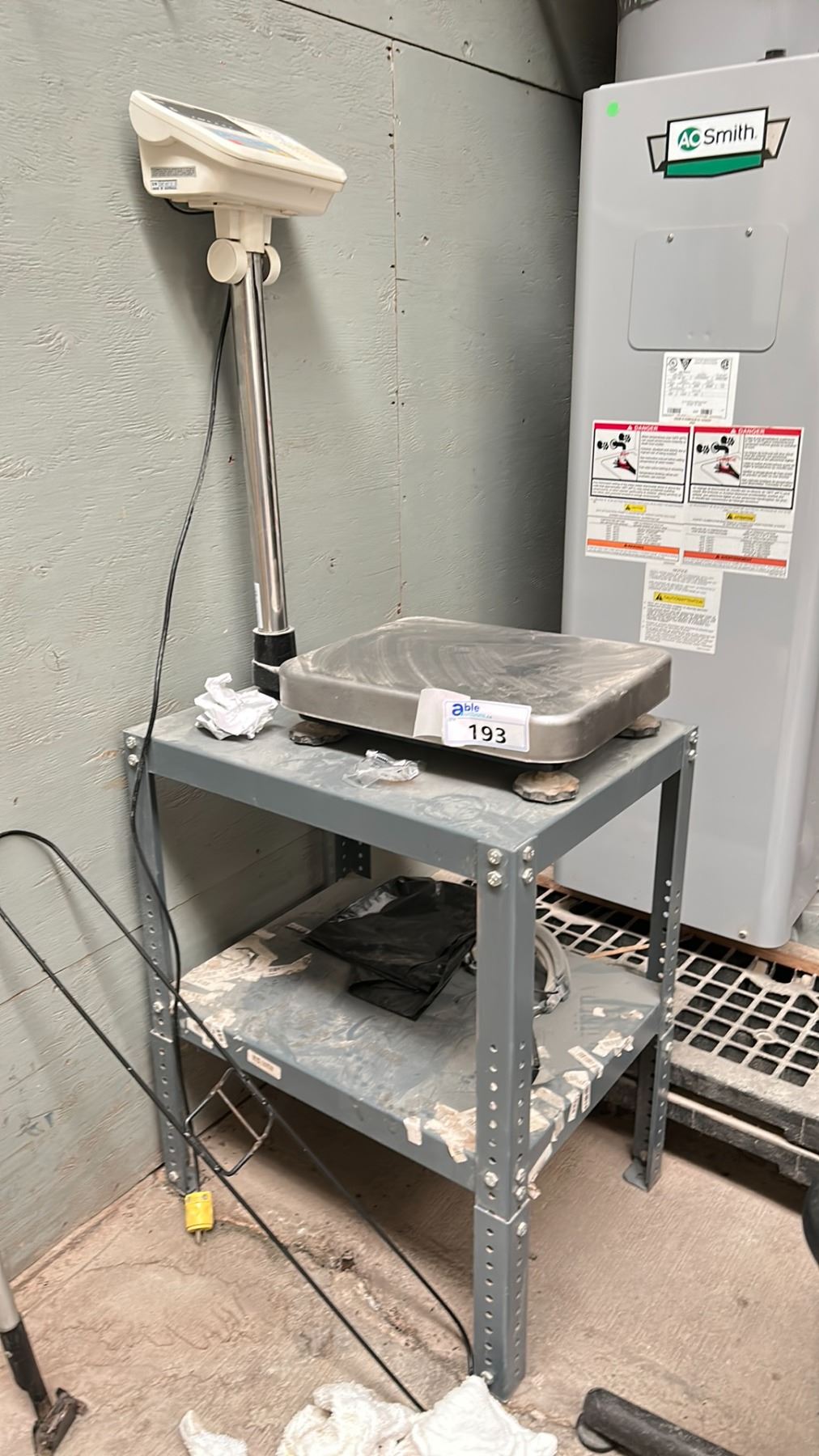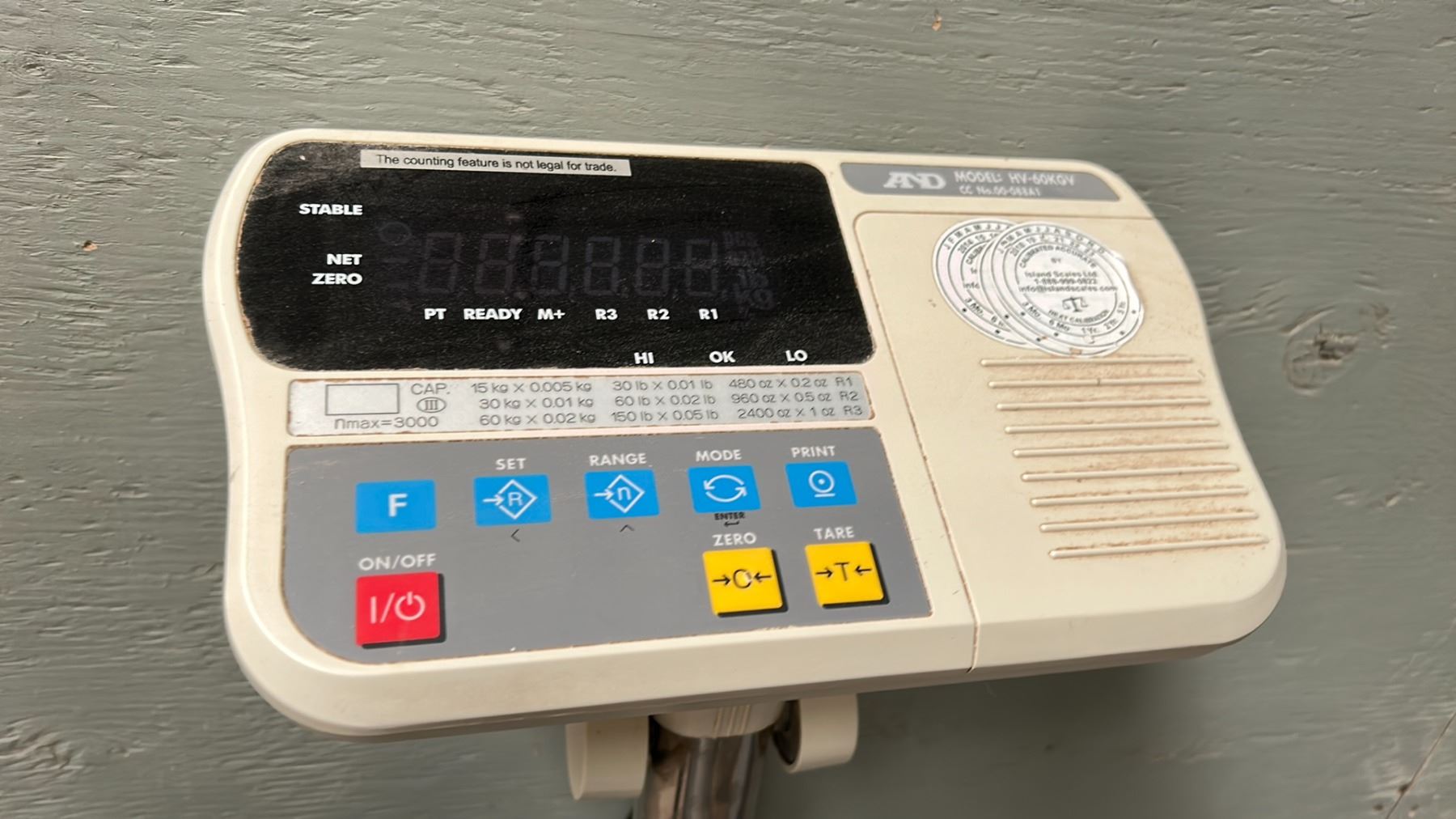 AND DIGITAL SCALE MODEL HV-60KGV ON METAL TABLE. LOCATED OUTSIDE SACHET 2