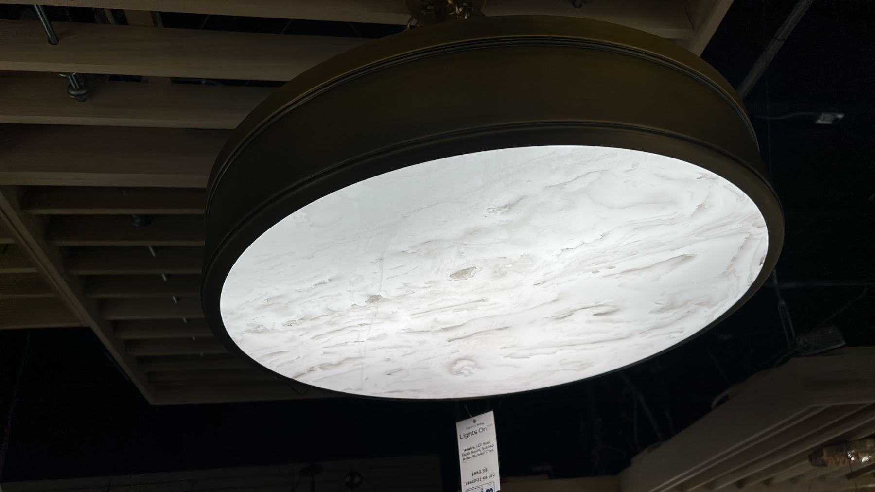 ANDERS, LED, SEMI FLUSH MOUNT. RUBBED BRASS. MARBLED GLASS, 22". $970 RETAIL.