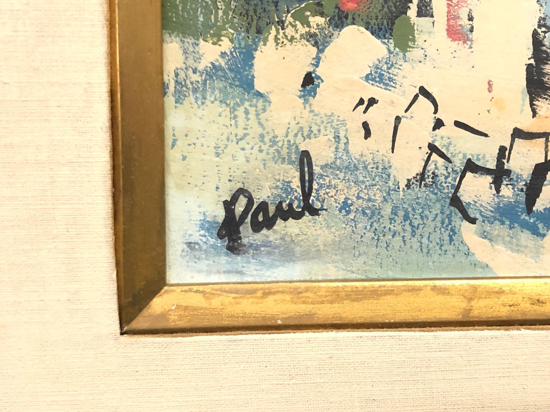 ANDREW PAUL, ORIGINAL FRAMED OIL ON BOARD PAINTING, C. 1950S, SIGNED LOWER LEFT, ABSTRACT COTTAGE
