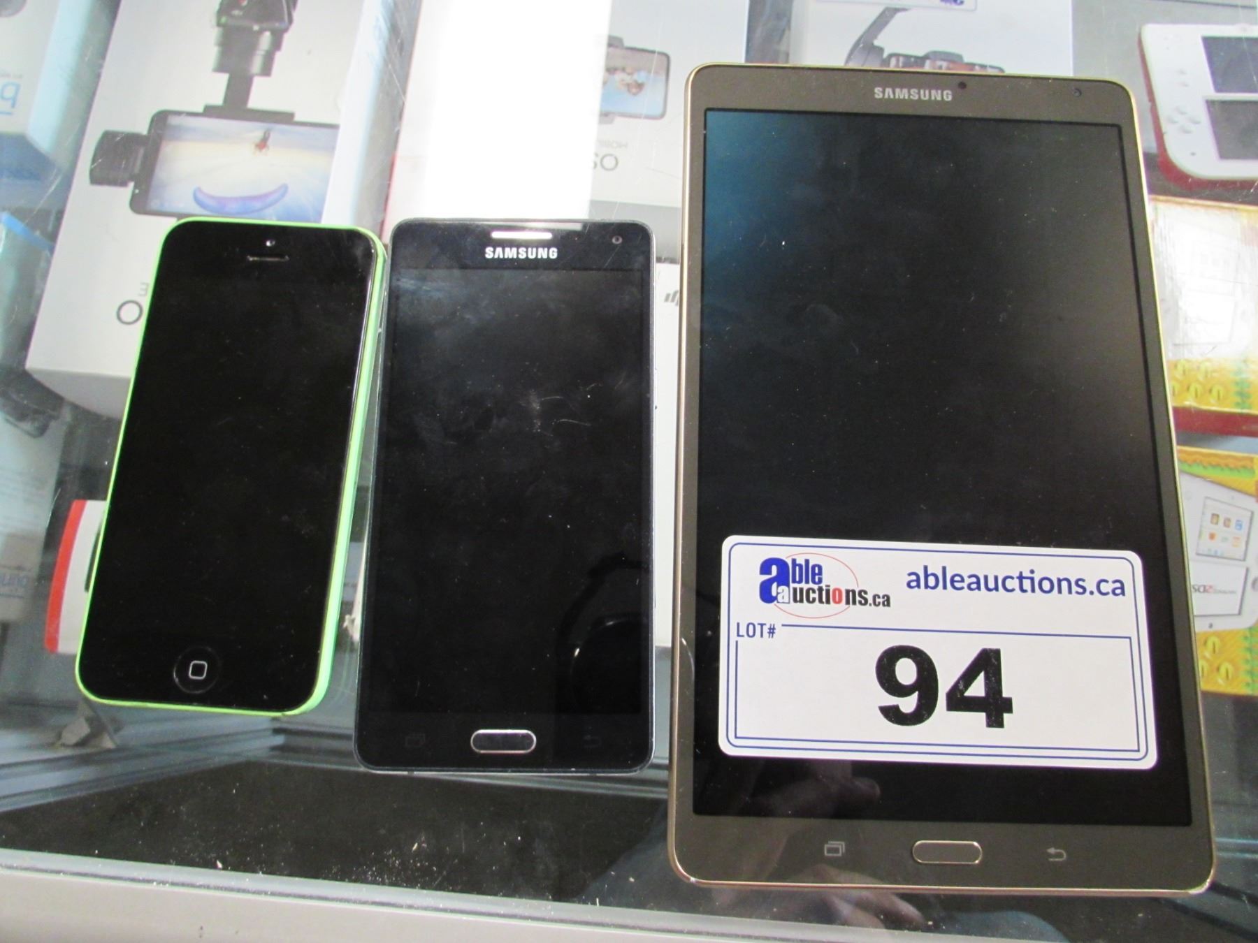 ANDROID TABLET, IPHONE 5C & SAMSUNG ANDROID PHONE (FOR PARTS & REPAIR)