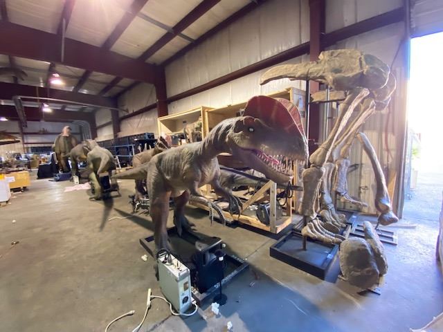 ANIMATRONIC DILOPHOSAURUS EARLY JURASSIC PERIOD DINOSAUR LIVED IN NORTH AMERICA 193 MILLION YEARS AGO MEASURES 199" LONG X 44" WIDE X 89" TALL. APPROX. WEIGHT 186 KG. READY FOR SHIPPING, C/W CUSTOM CONTROLLER, SPEAKER, MOTION SENSOR & ALL REQUIRED WIRING APPROX 410LBS
