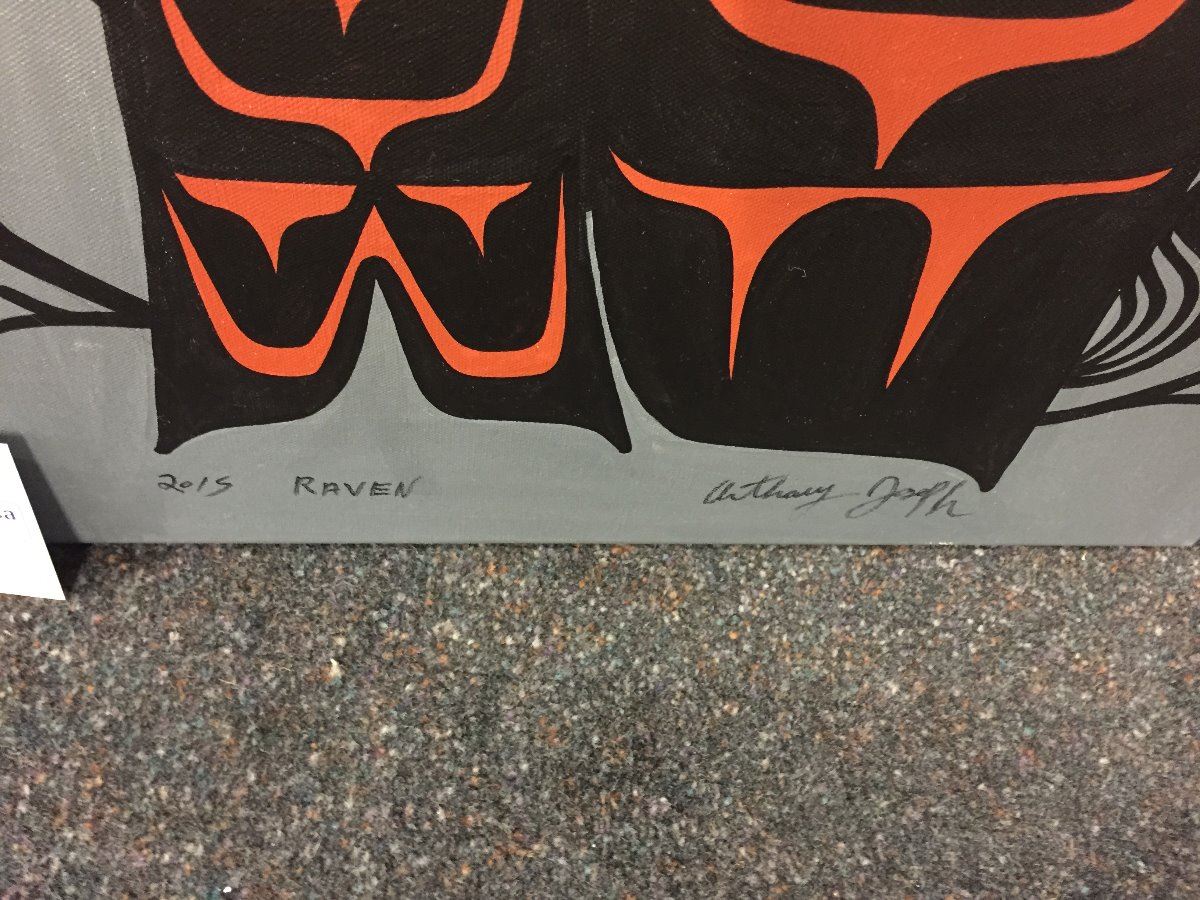 ANTHONY JOSEPH, SQUAMISH, ACRYLIC ON CANVAS, "RAVEN" SIGNED LOWER RIGHT 18" W X 24" H