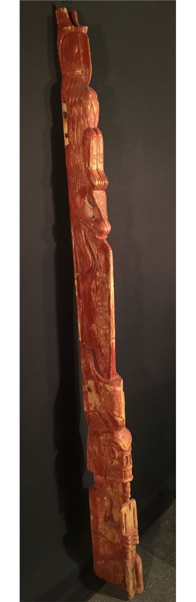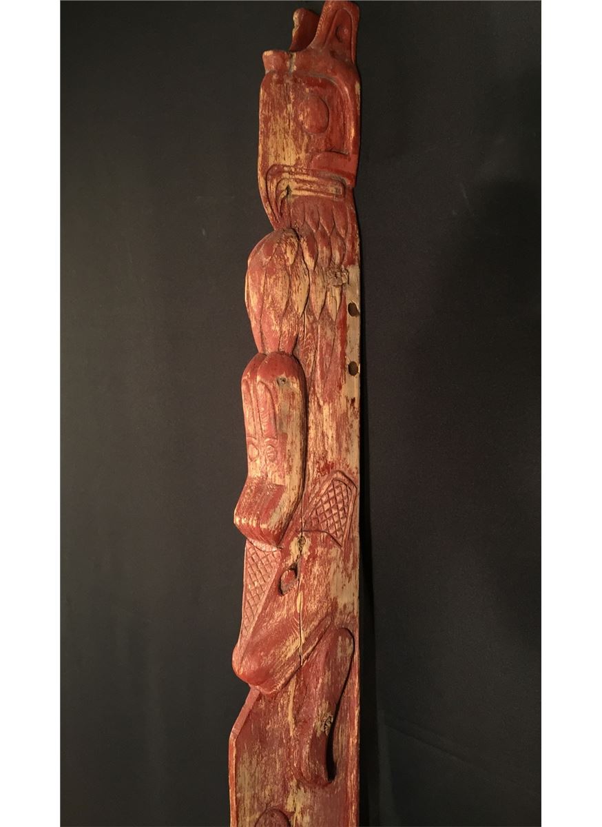 ANTIQUE 5 FIGURE TOTEM, 82" HIGH (WINGS MISSING)