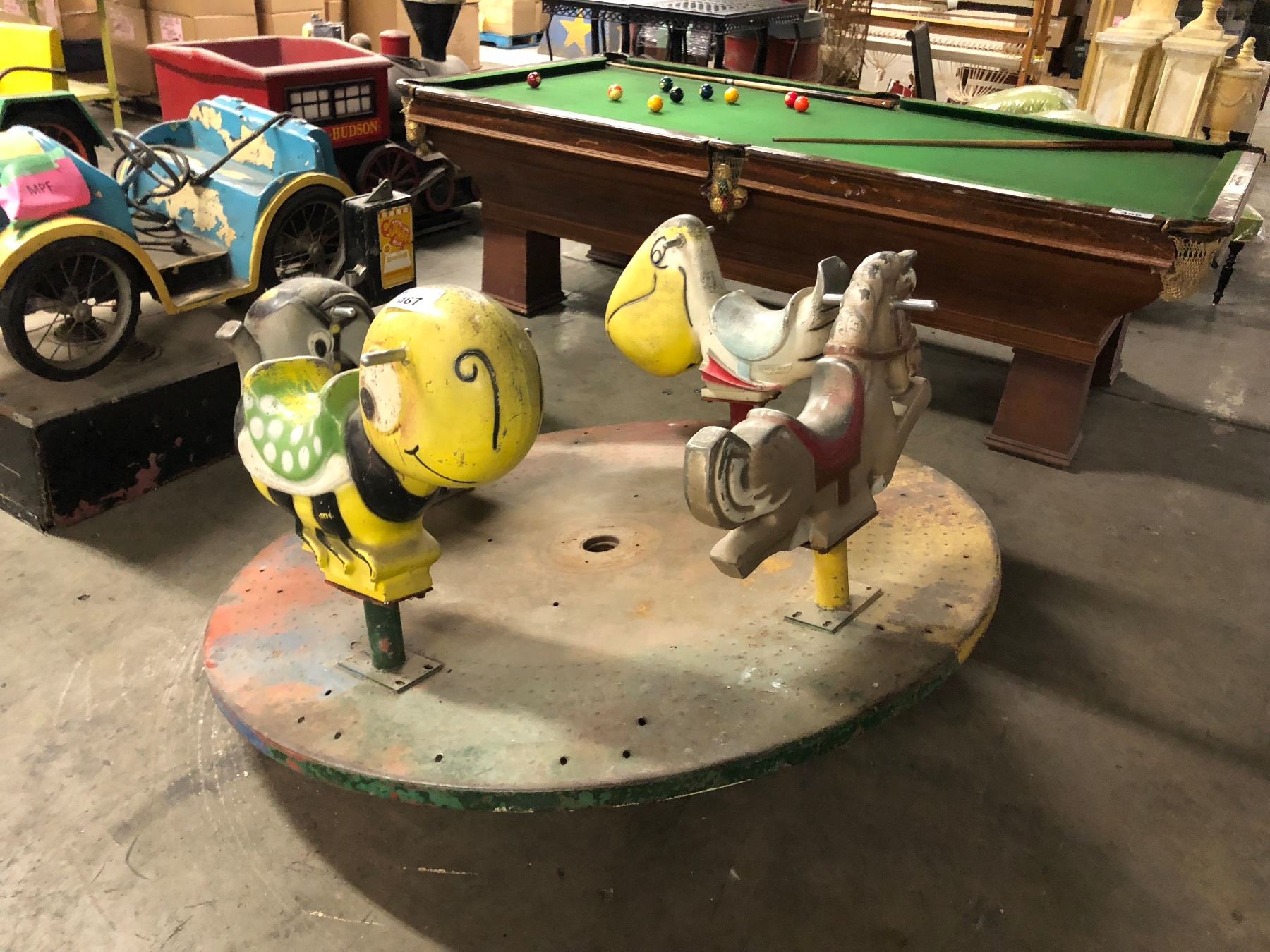 ANTIQUE ALUMINUM KIDS RIDE ON TOYS ON METAL SPINNING BASE