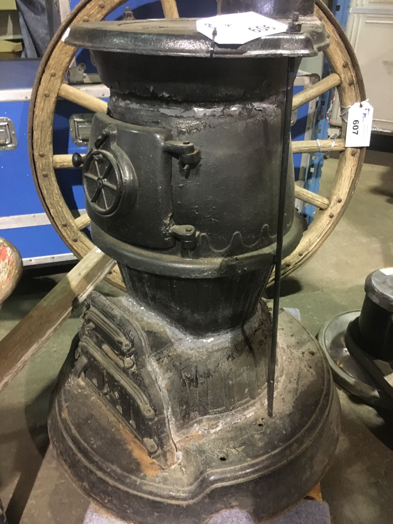 ANTIQUE BLACK CAST IRON WOOD BURNING HEATER