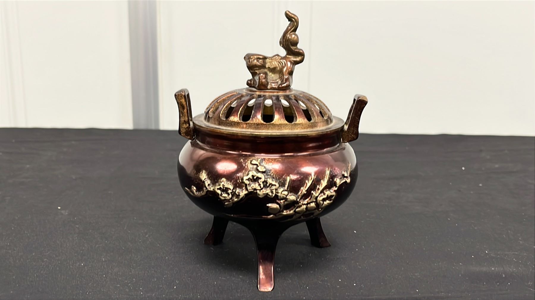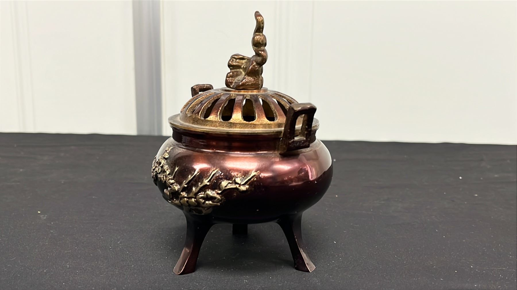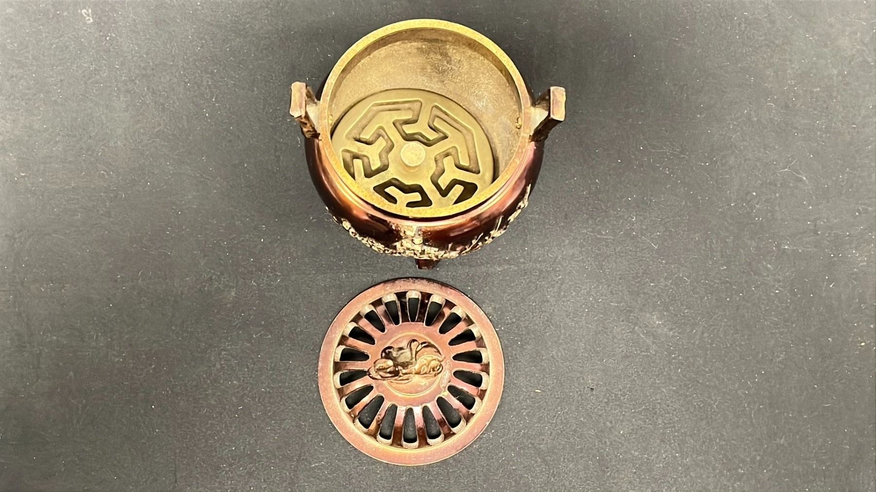 ANTIQUE BRONZE JAPANESE INCENSE CENSER HOLDER BOWL