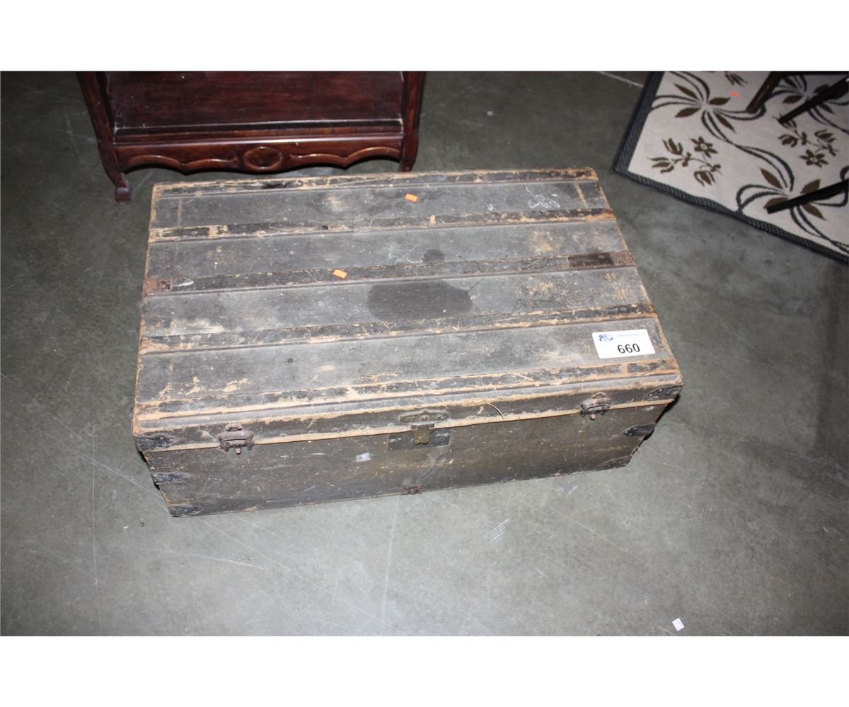 ANTIQUE CANVAS COVERED STEAMER TRUNK