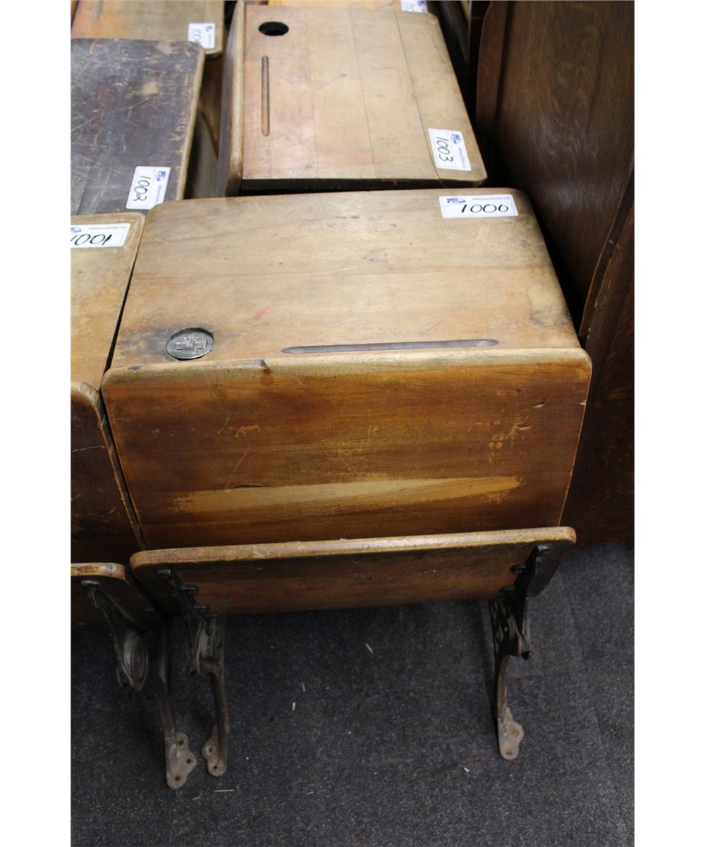 ANTIQUE CHILDRENS SCHOOL DESK  WITH BLACK CAST IRON FRAME