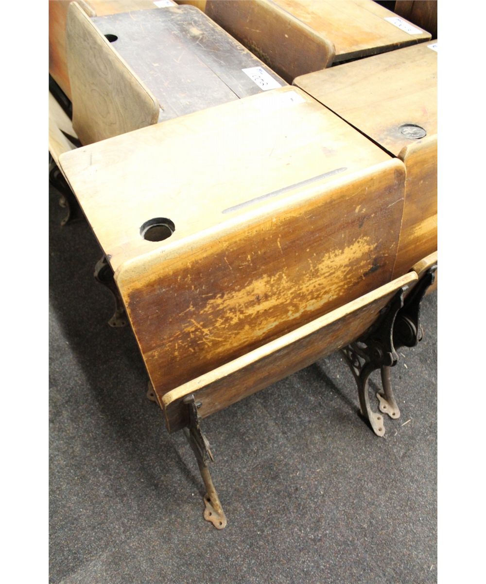 ANTIQUE CHILDRENS SCHOOL DESK WITH BLACK CAST IRON FRAME