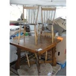 ANTIQUE DRAW LEAF OAK DINING TABLE WITH 4 SOLID WOOD CHAIRS