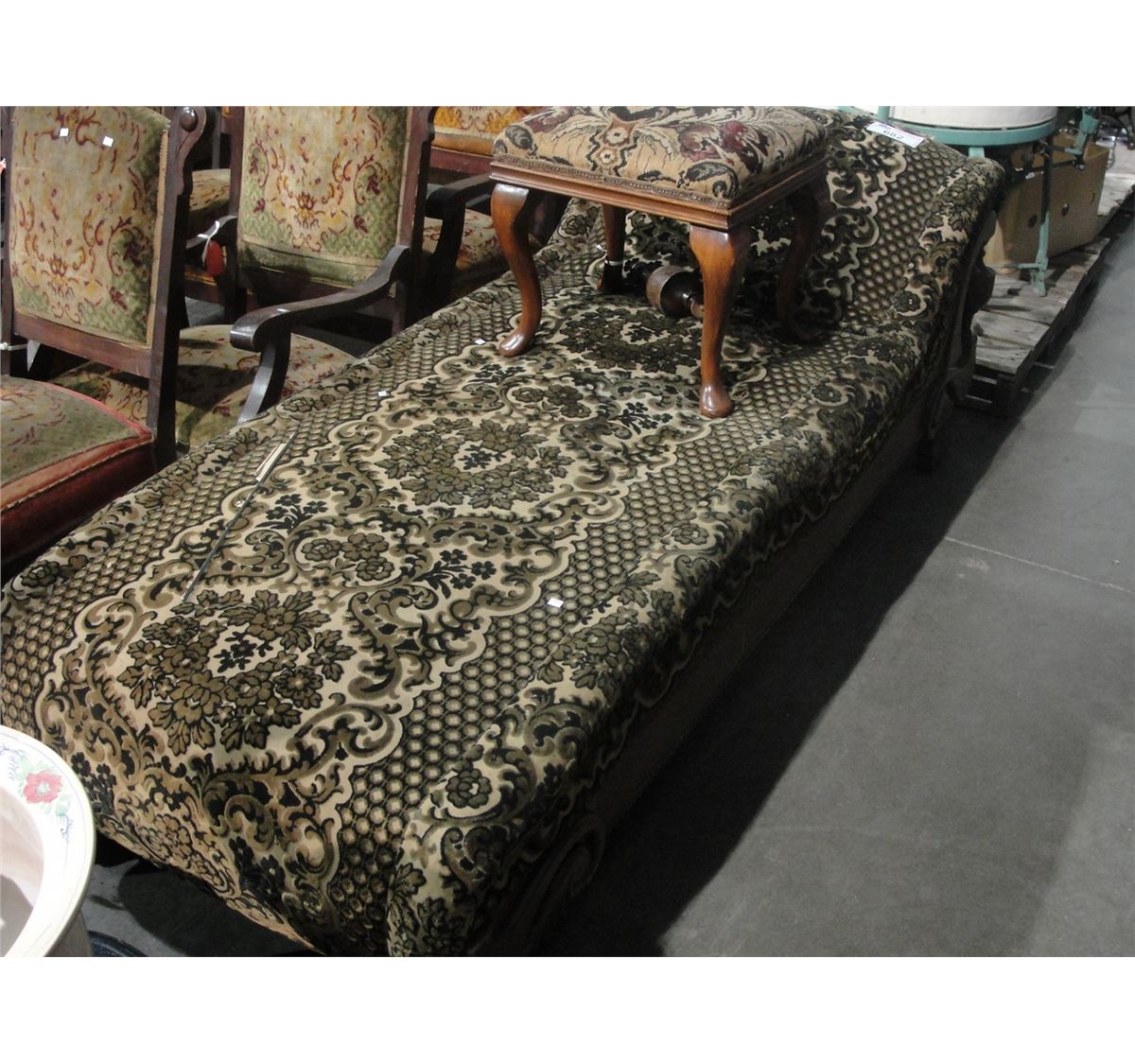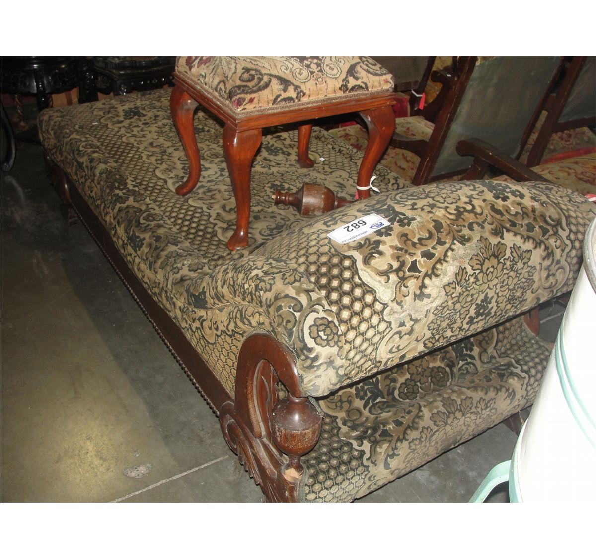 ANTIQUE FEINTING COUCH AND AN UPHOLSTERED FOOTSTOOL