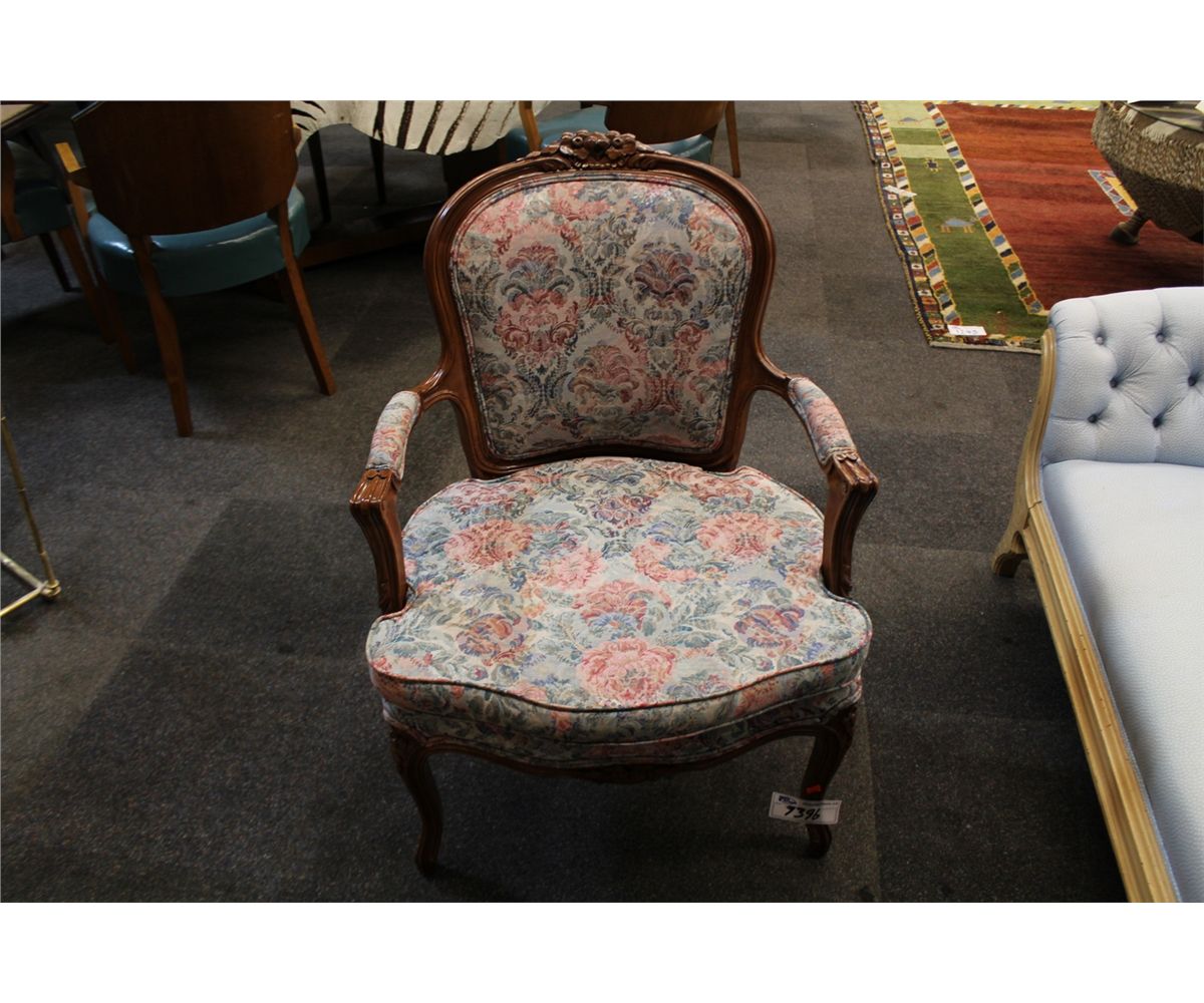 ANTIQUE, FLORAL PRINT FABRIC CHAIR