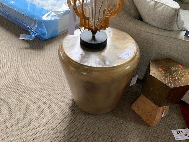 ANTIQUE GOLD METAL CIRCULAR END TABLE & GOLD PLANT STAND