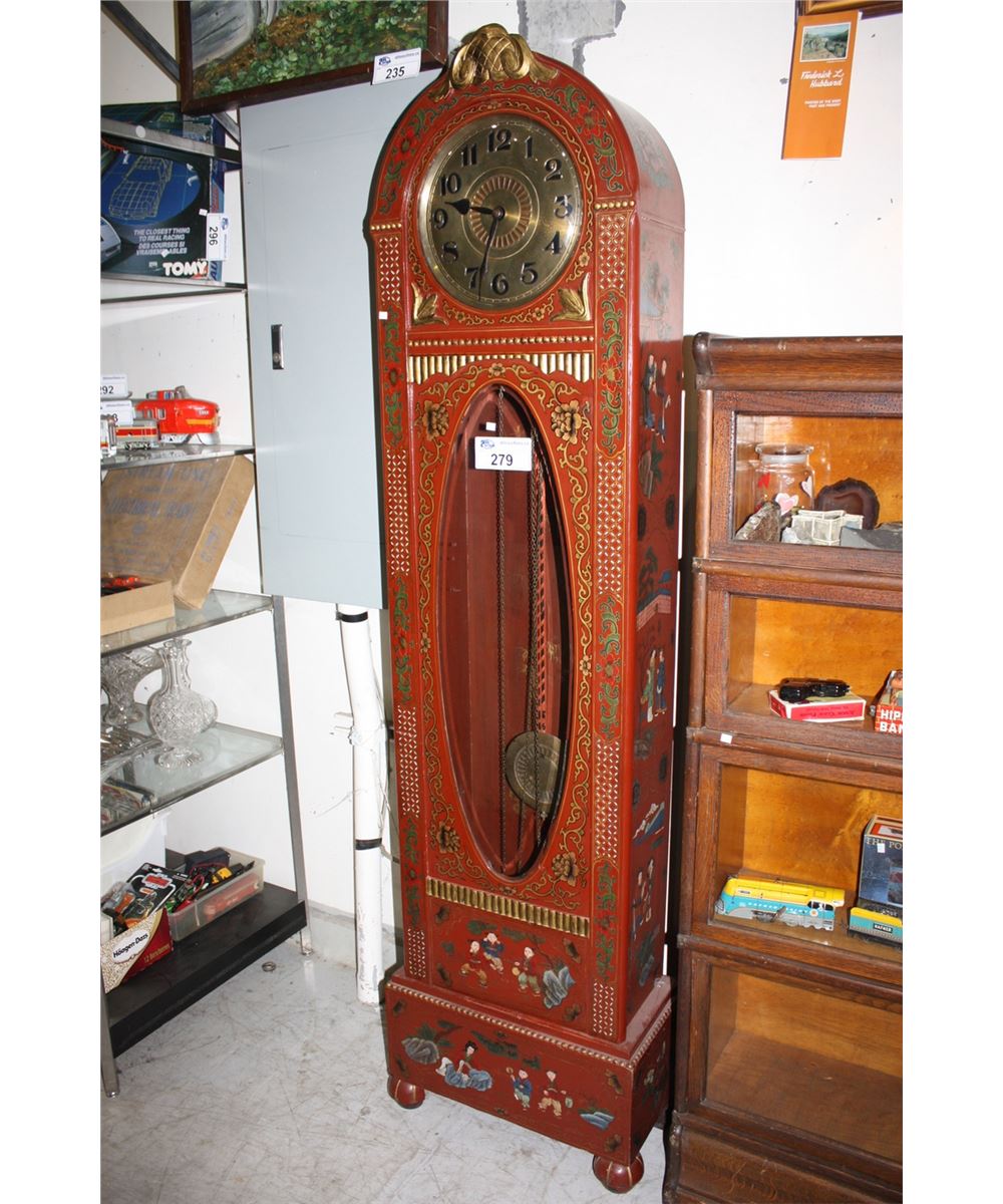 ANTIQUE GRANDFATHER CLOCK WITH ORIENTAL PAINTED CASE