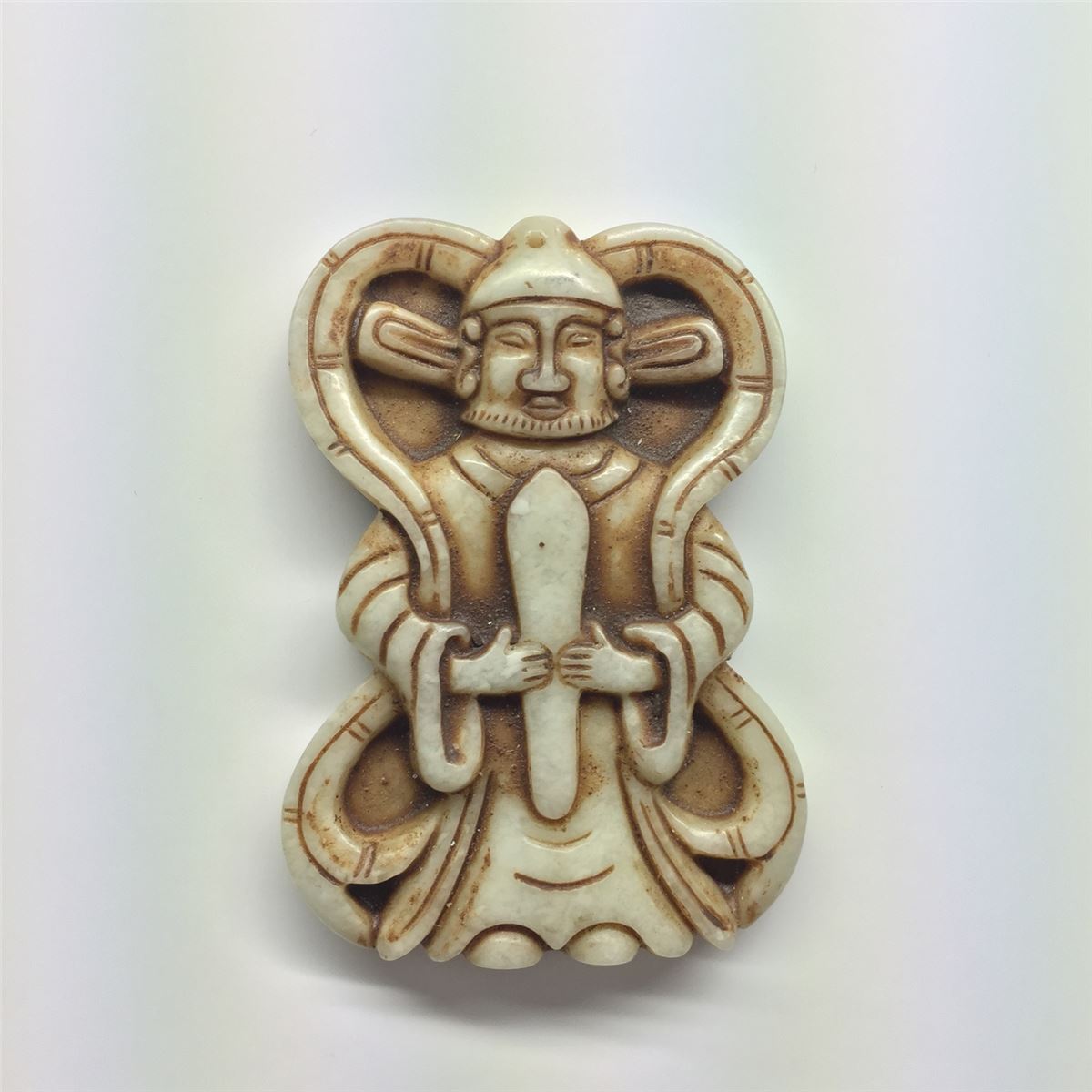 ANTIQUE HAND CARVED JADE PRAYER PENDANT