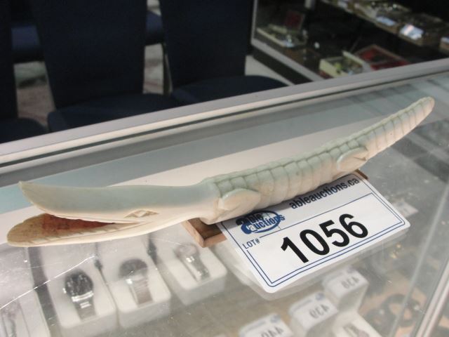 ANTIQUE IVORY CROCODILE CARVED WALRUS TUSK