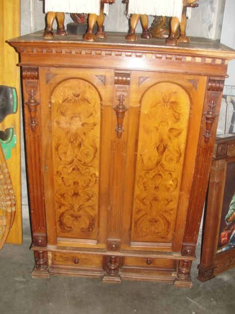 ANTIQUE MAHOGANY CABINET WITH DECORATIVE ANGEL PANELS