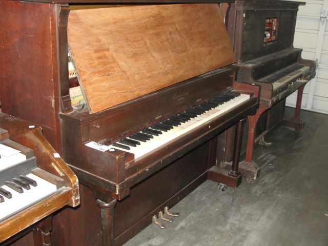 ANTIQUE MAHOGANY CASED MASON AND RISCH STEEL BACK UPRIGHT PIANO