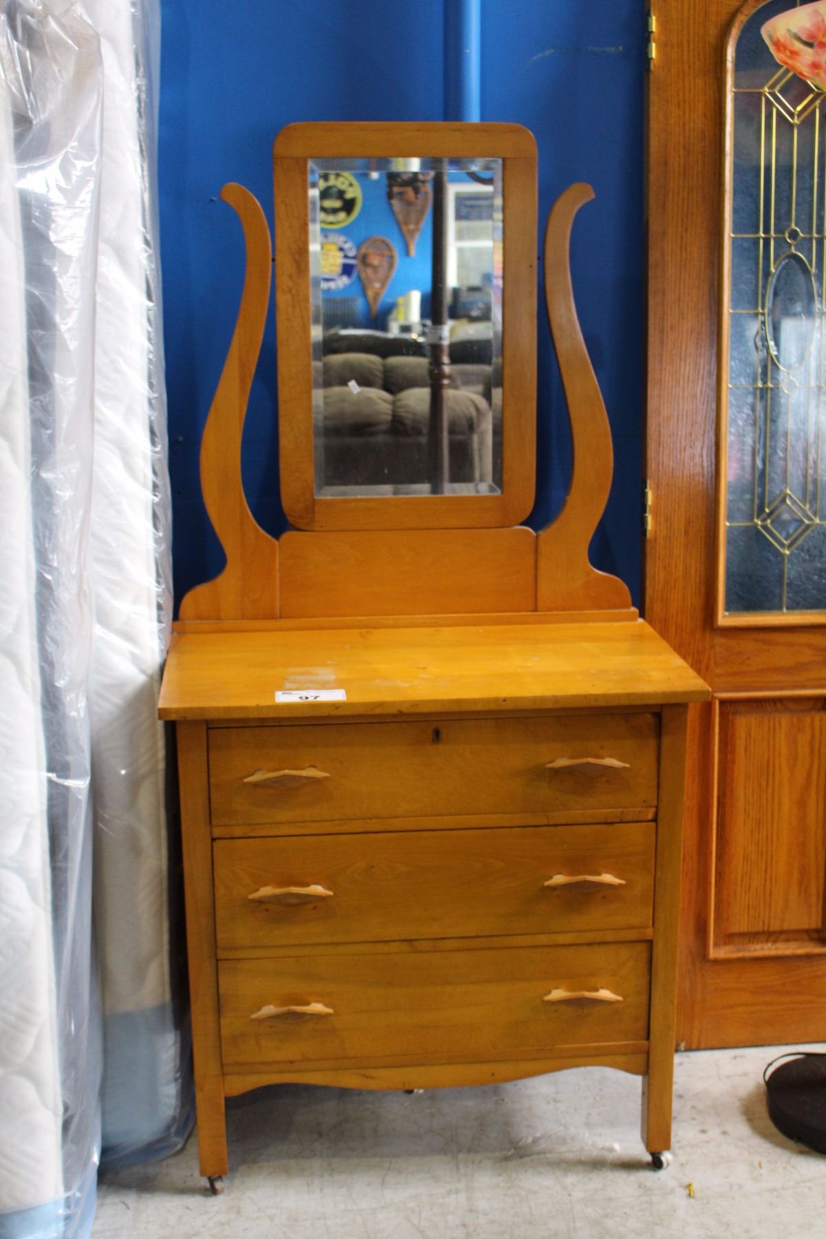 ANTIQUE MAPLE 3 DRAWER DRESSER WITH MIRROR