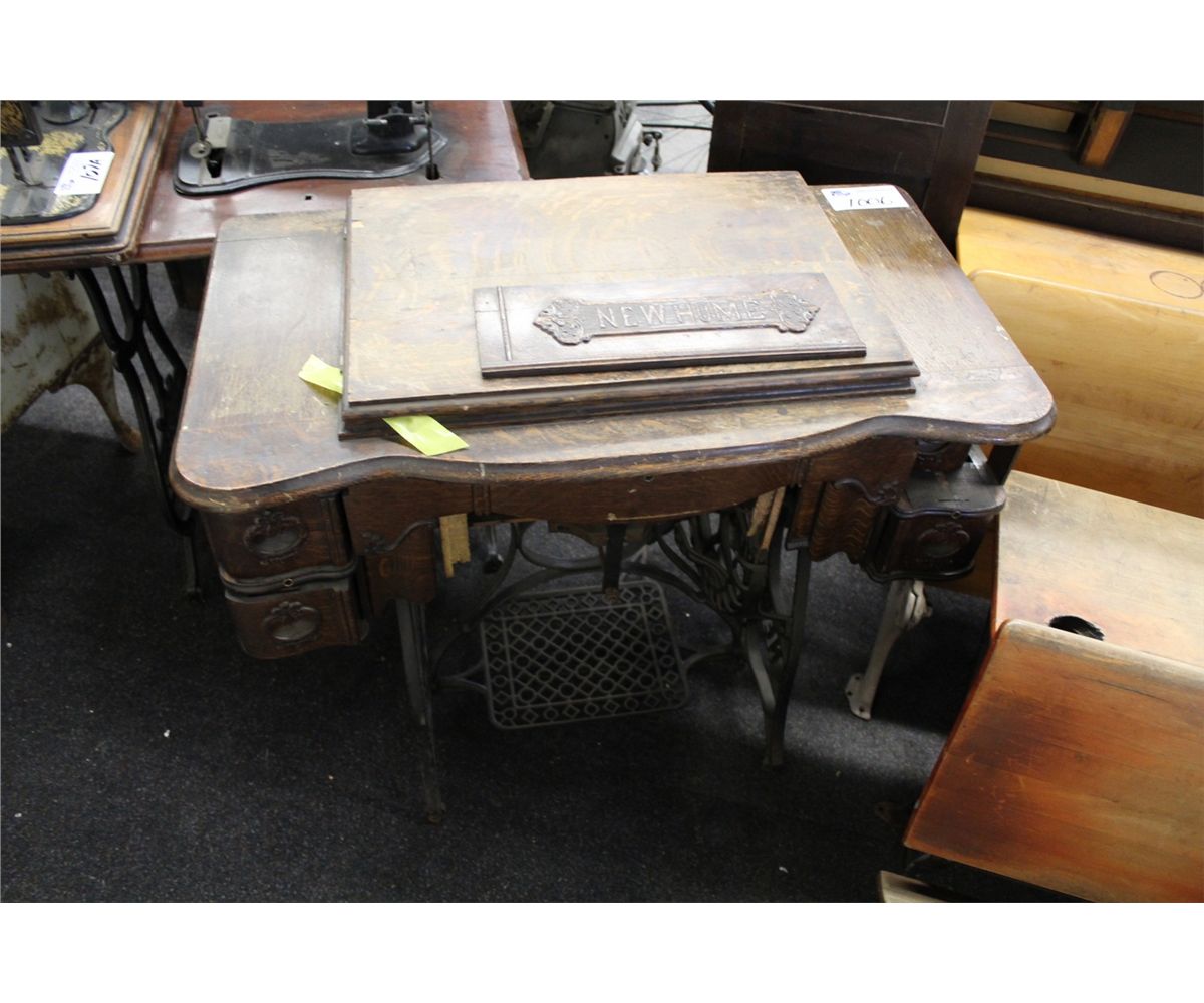 ANTIQUE NEWHOME SEWING MACHINE IN TABLE WITH DRAWERS