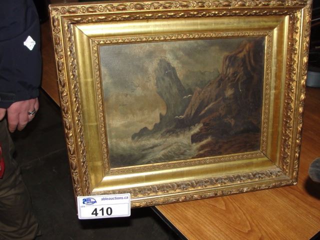 ANTIQUE OIL PAINTING WITH GILDED FRAME OF OCEAN AND SEA GULLS SCENE