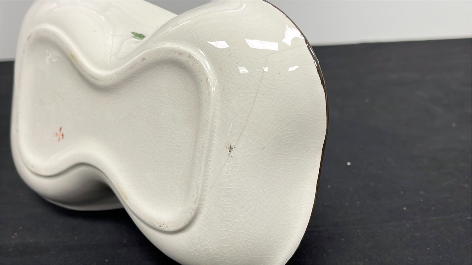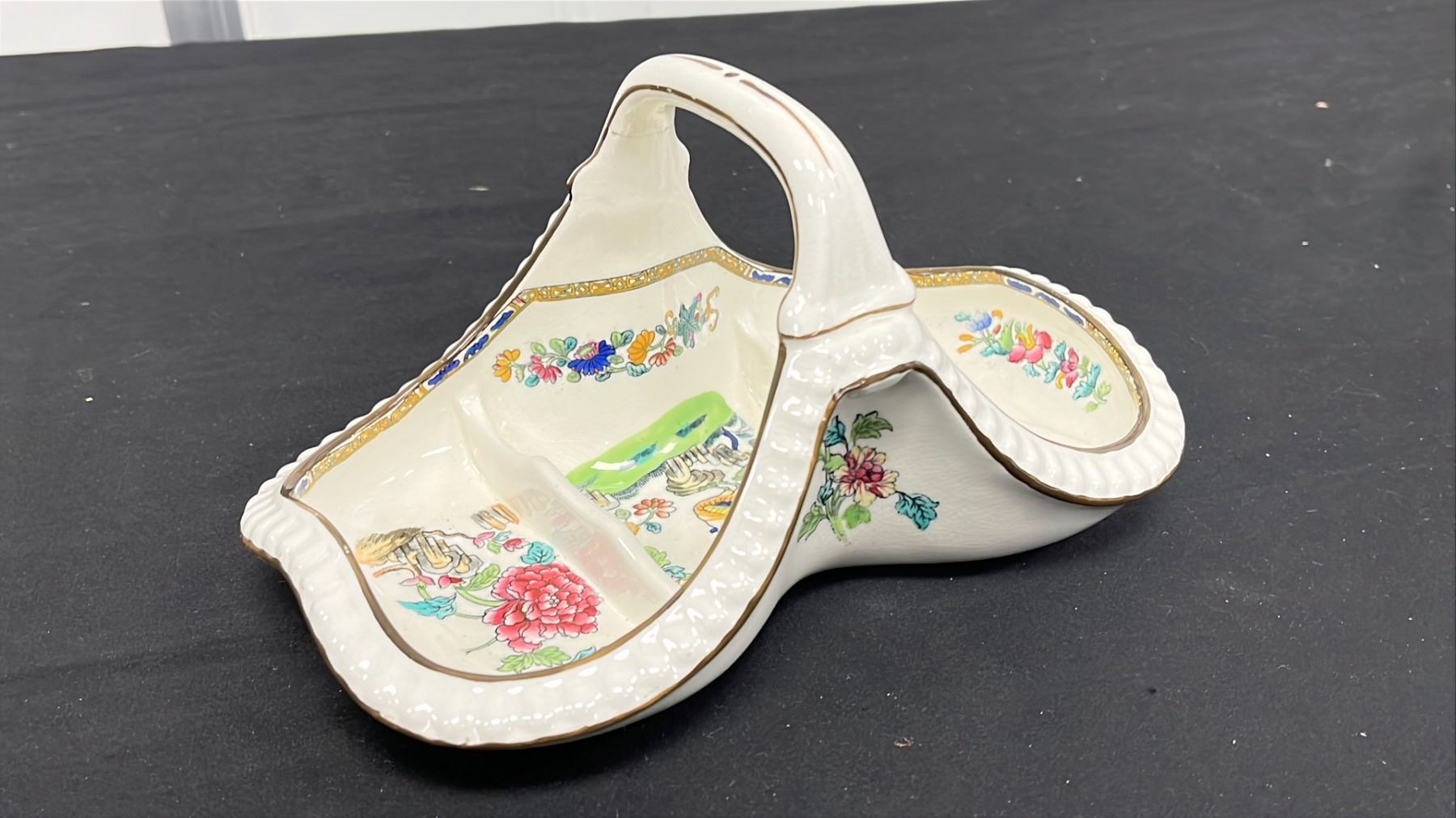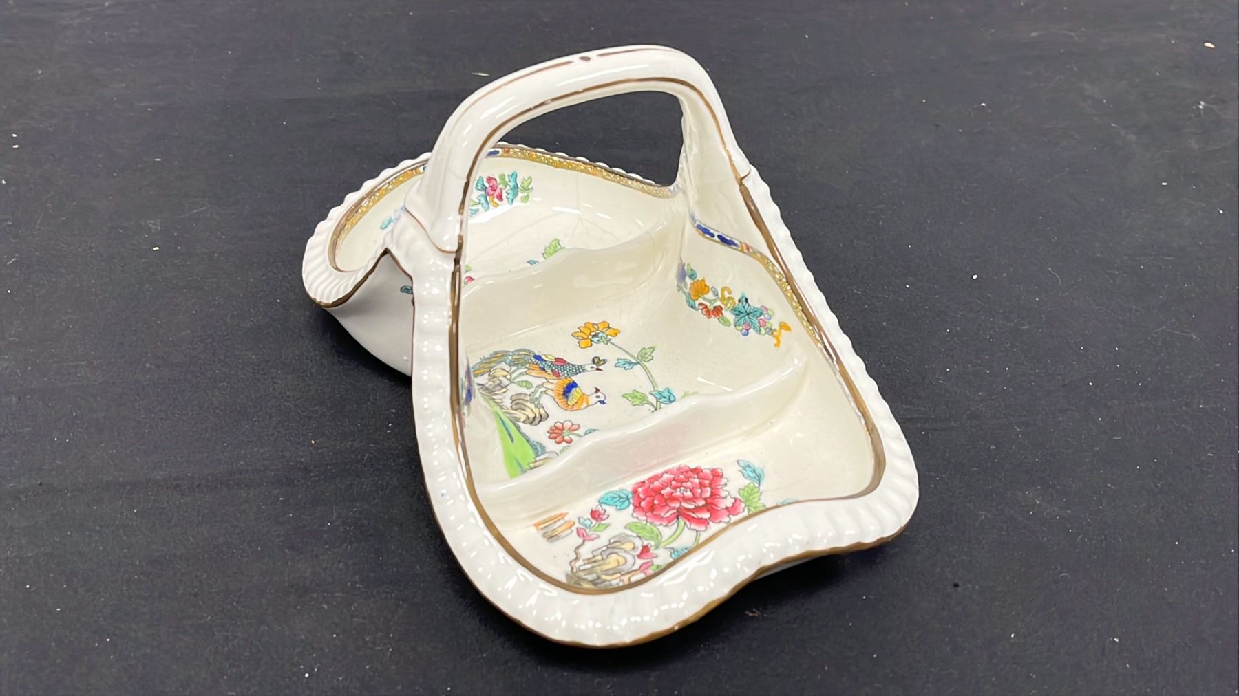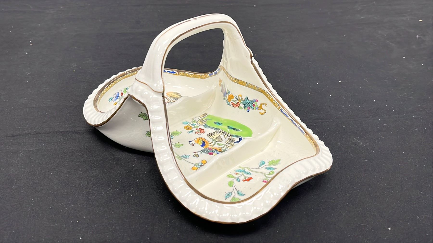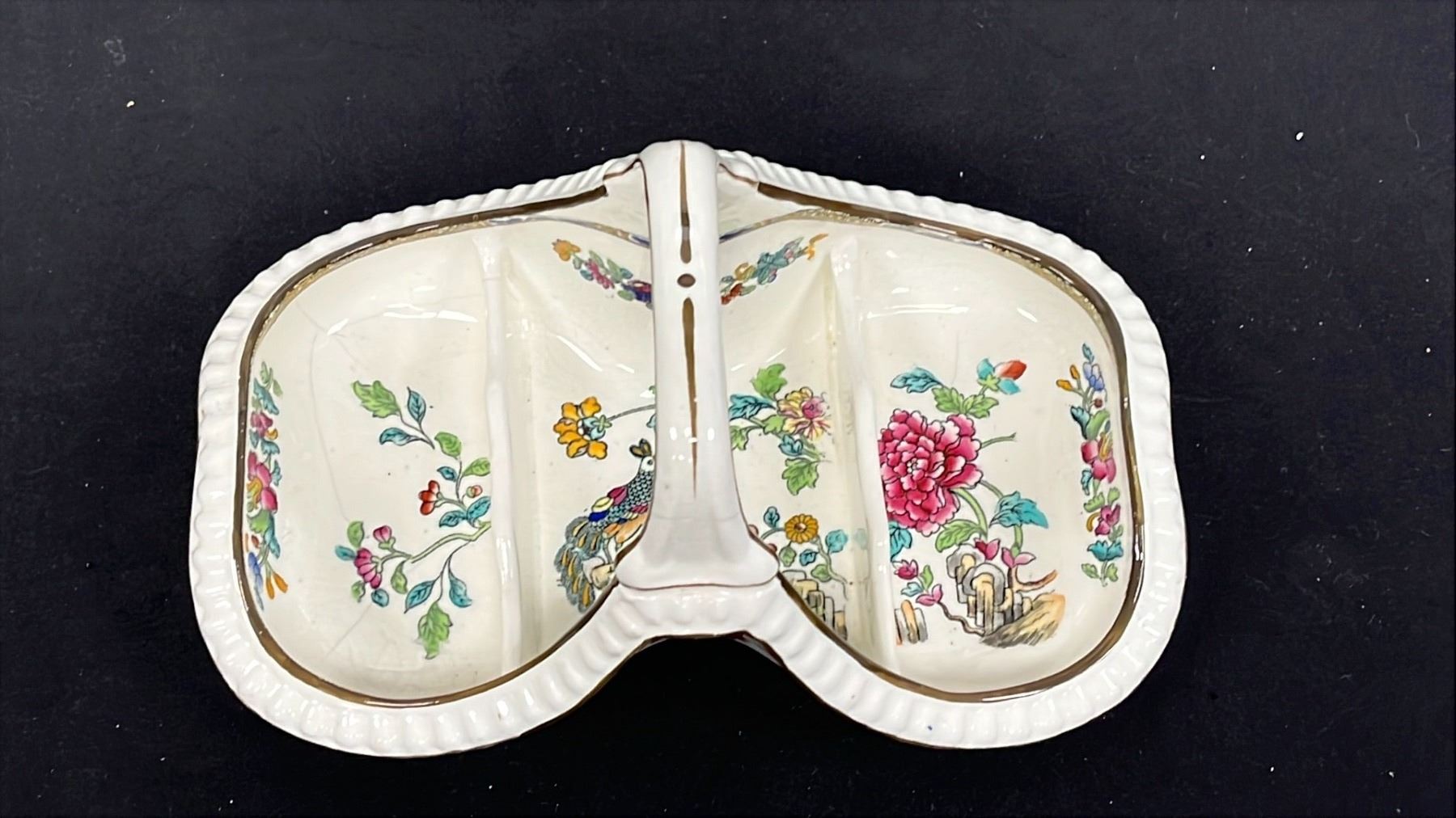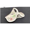 ANTIQUE PORCELAIN 3 COMPARTMENT HAND PAINTED BASKET TRAY