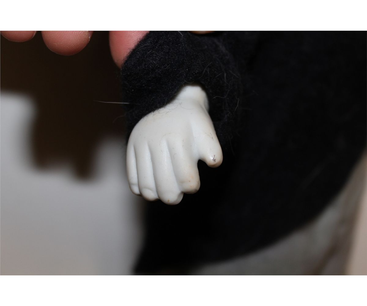 ANTIQUE PORCELAIN DOLL WITH FELT CLOTHING