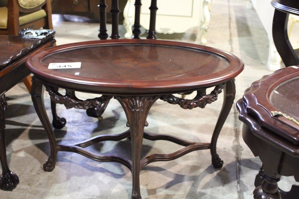 ANTIQUE REFINISHED CARVED CLAW FOOT SIDE TABLE WITH REMOVABLE PLATTER