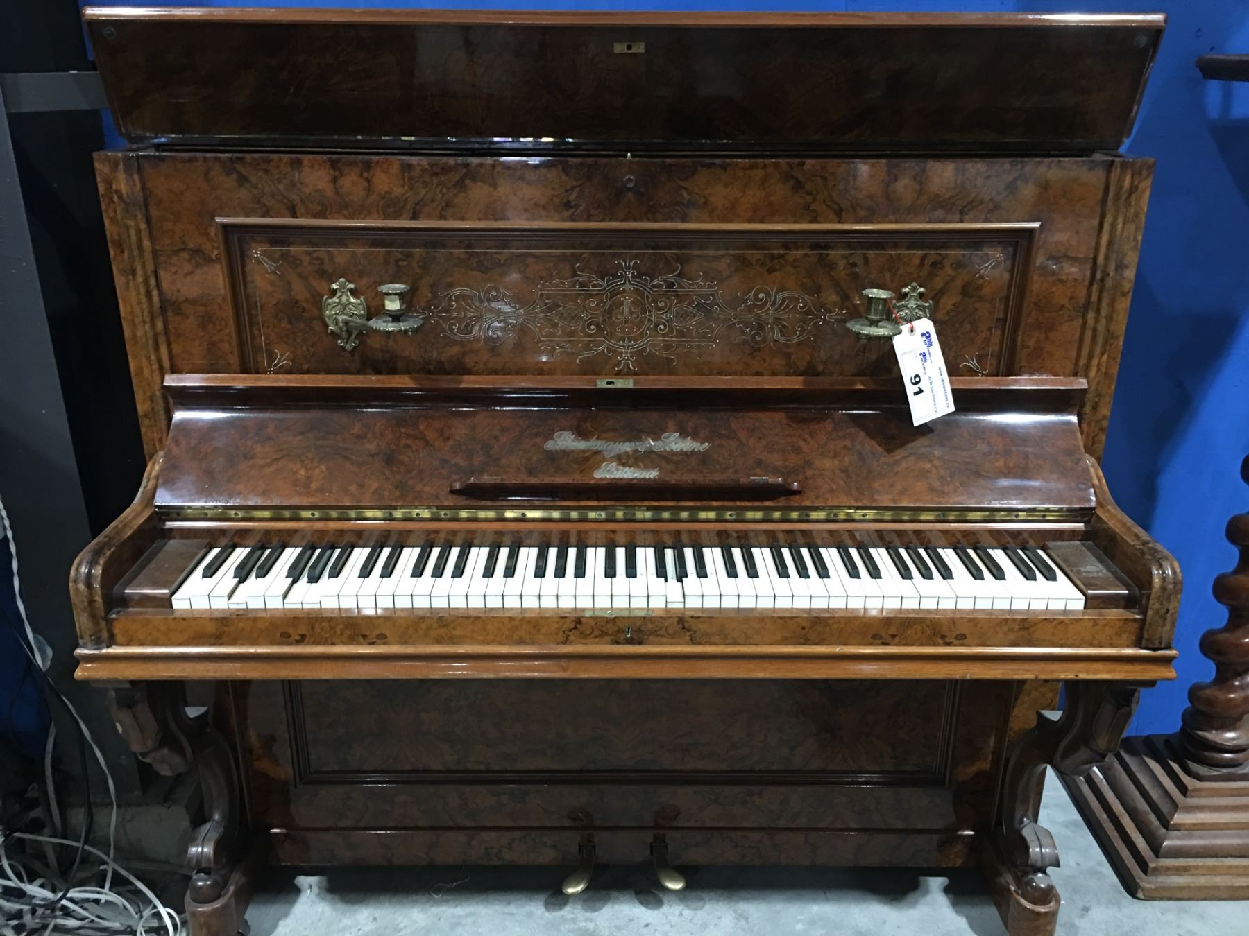 ANTIQUE SCHIEDMAYER & SOEHNE STUTTGART BURL CASED PIANO (REPAIR REQUIRED)