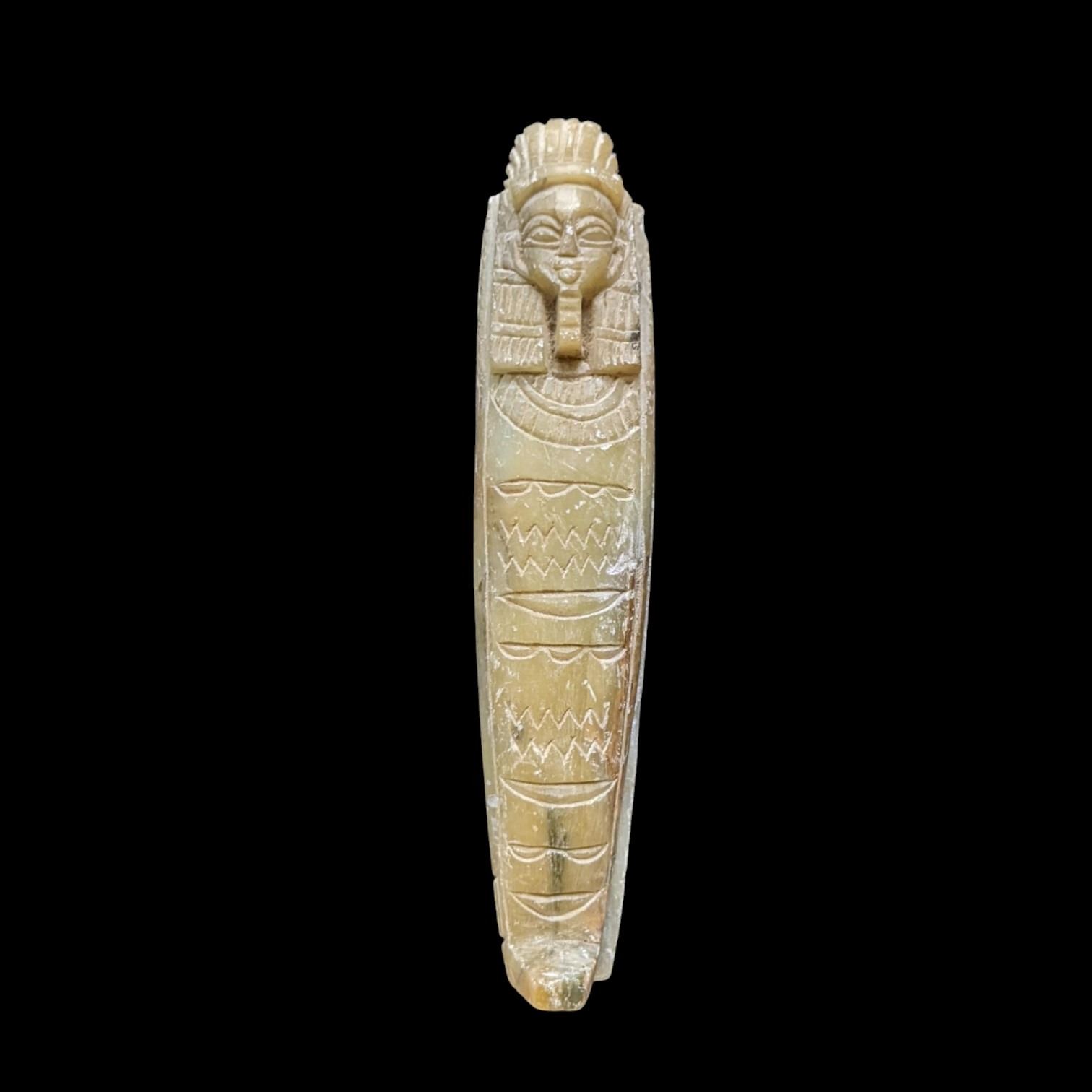 ANTIQUE SOAPSTONE MUMMY CARVED BOX 2 PIECES