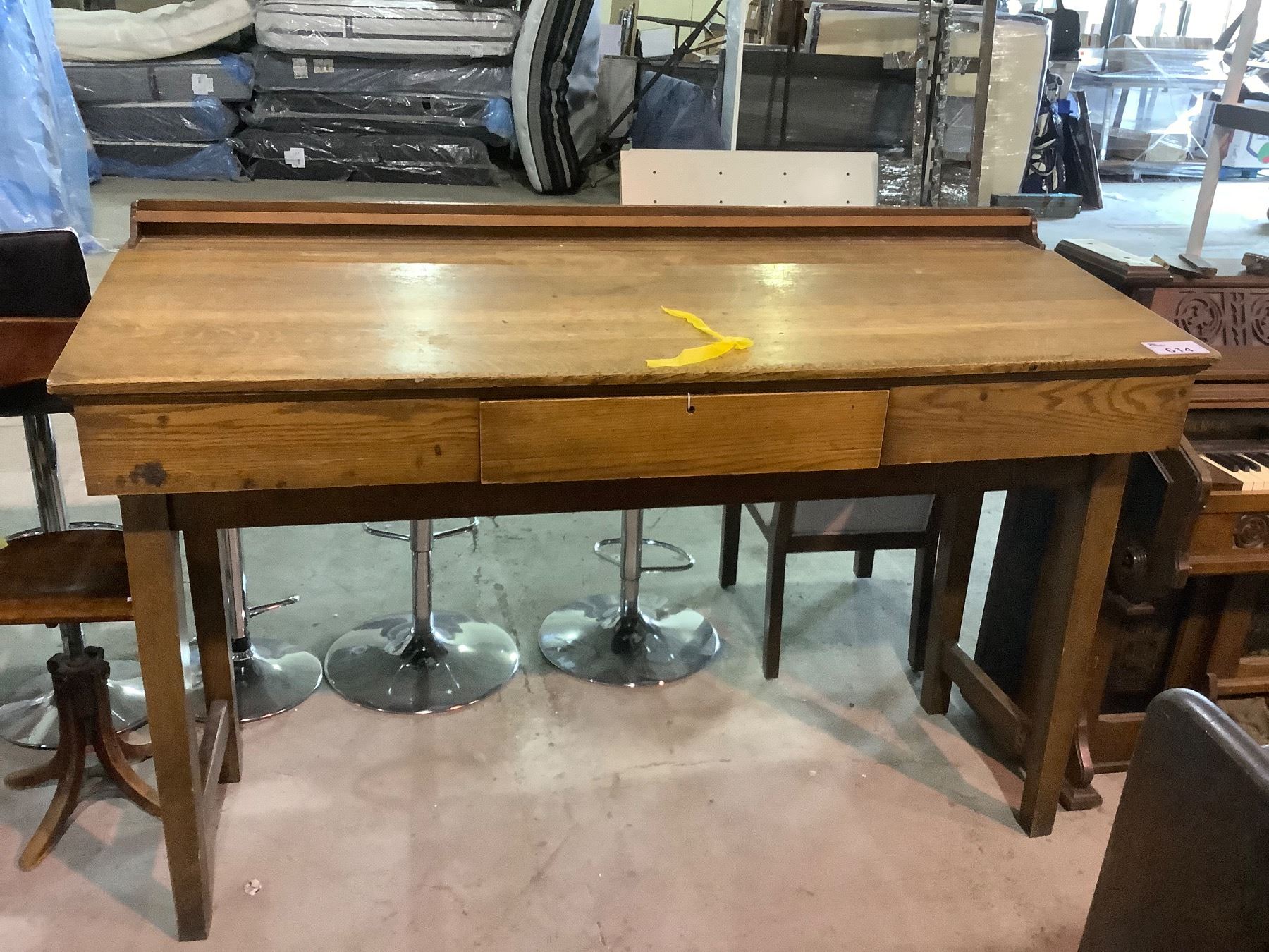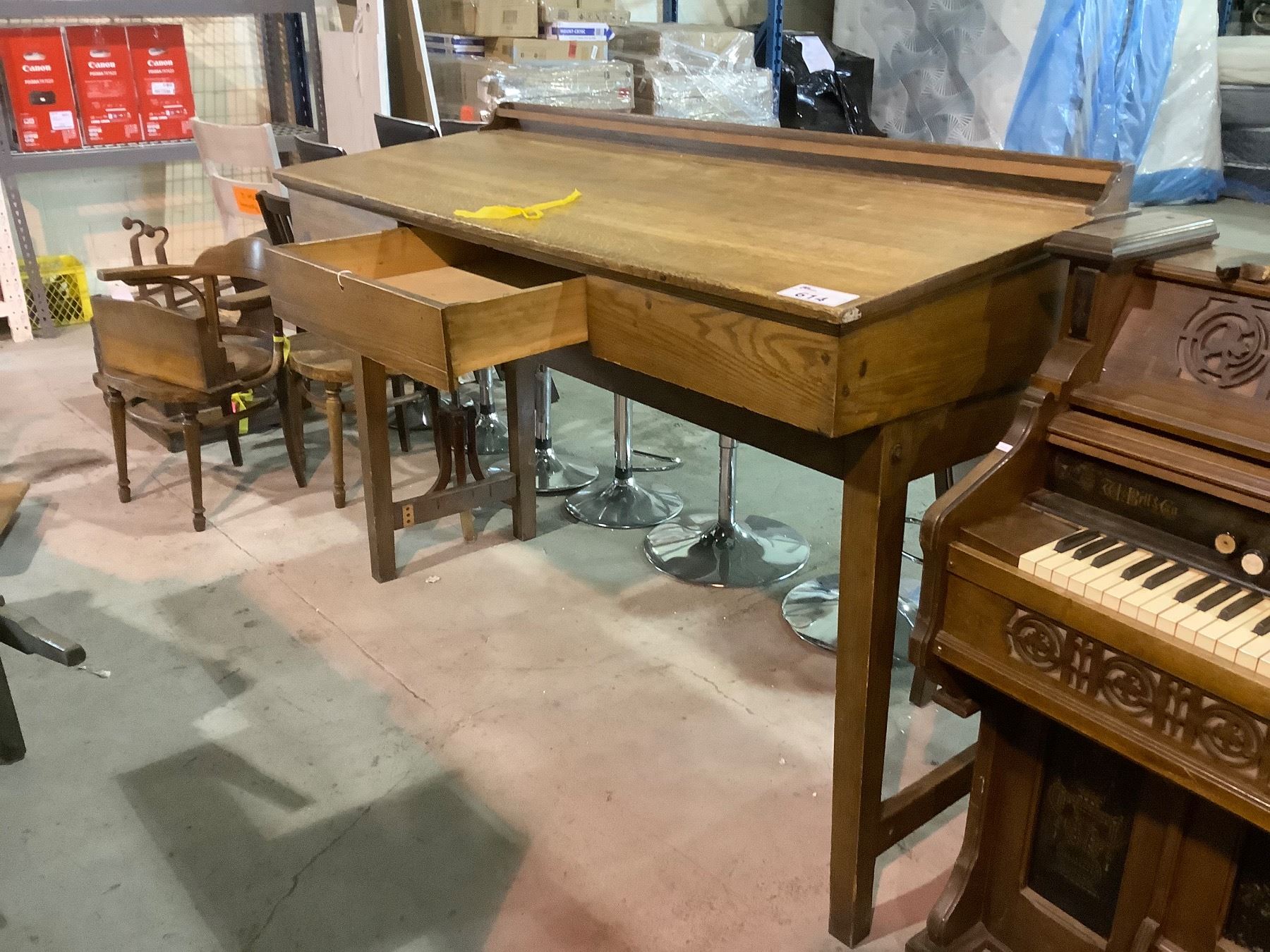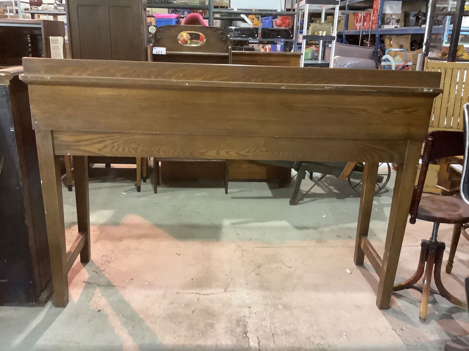ANTIQUE SOLID OAK CONDUCTORS DESK 44 X 72 X 28"