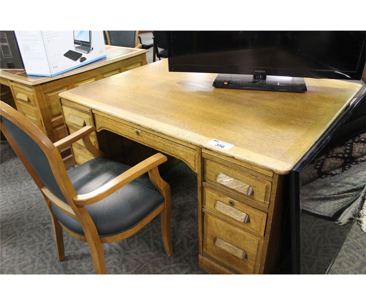 ANTIQUE SOLID OAK PARTNER'S DESK