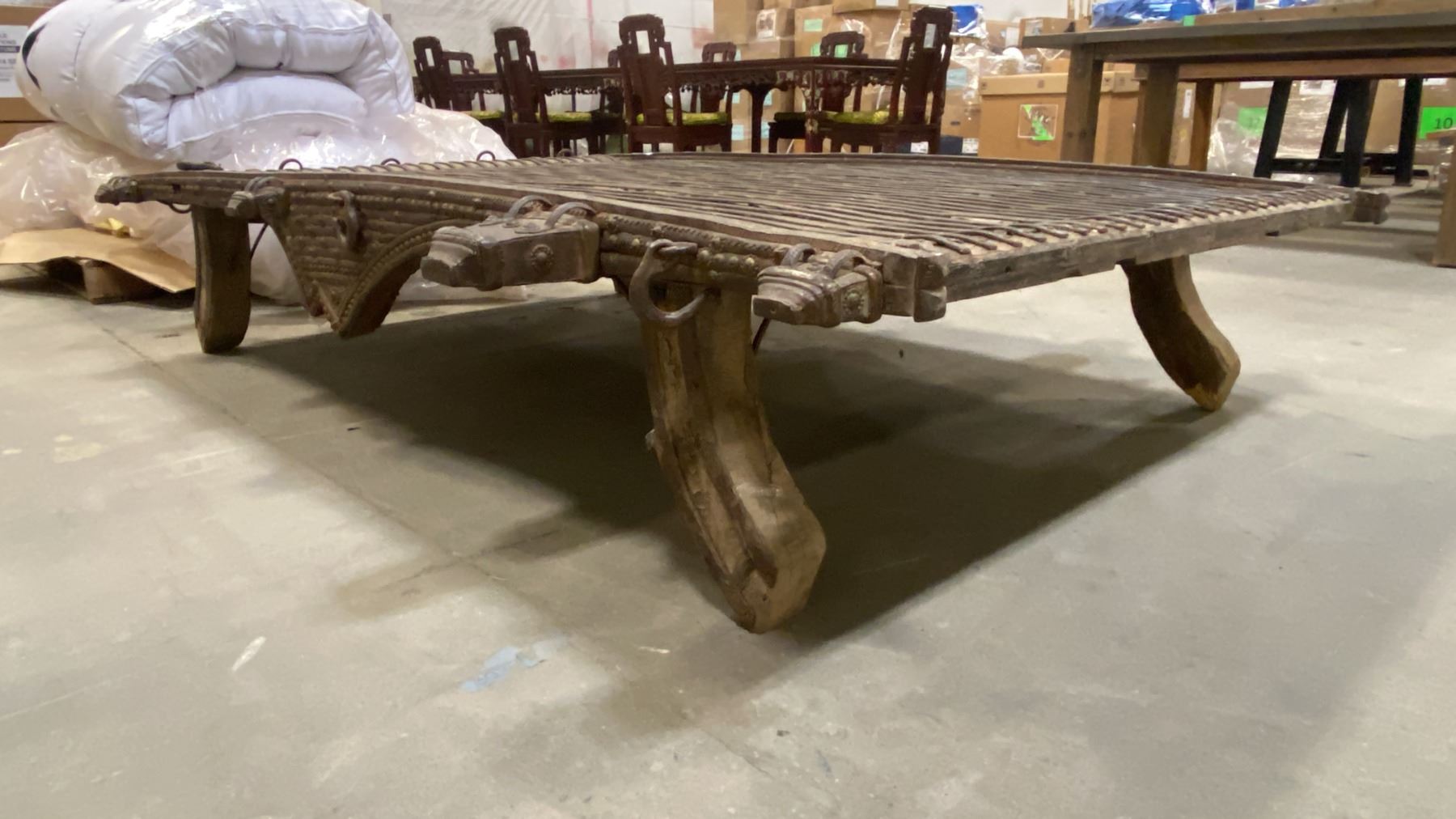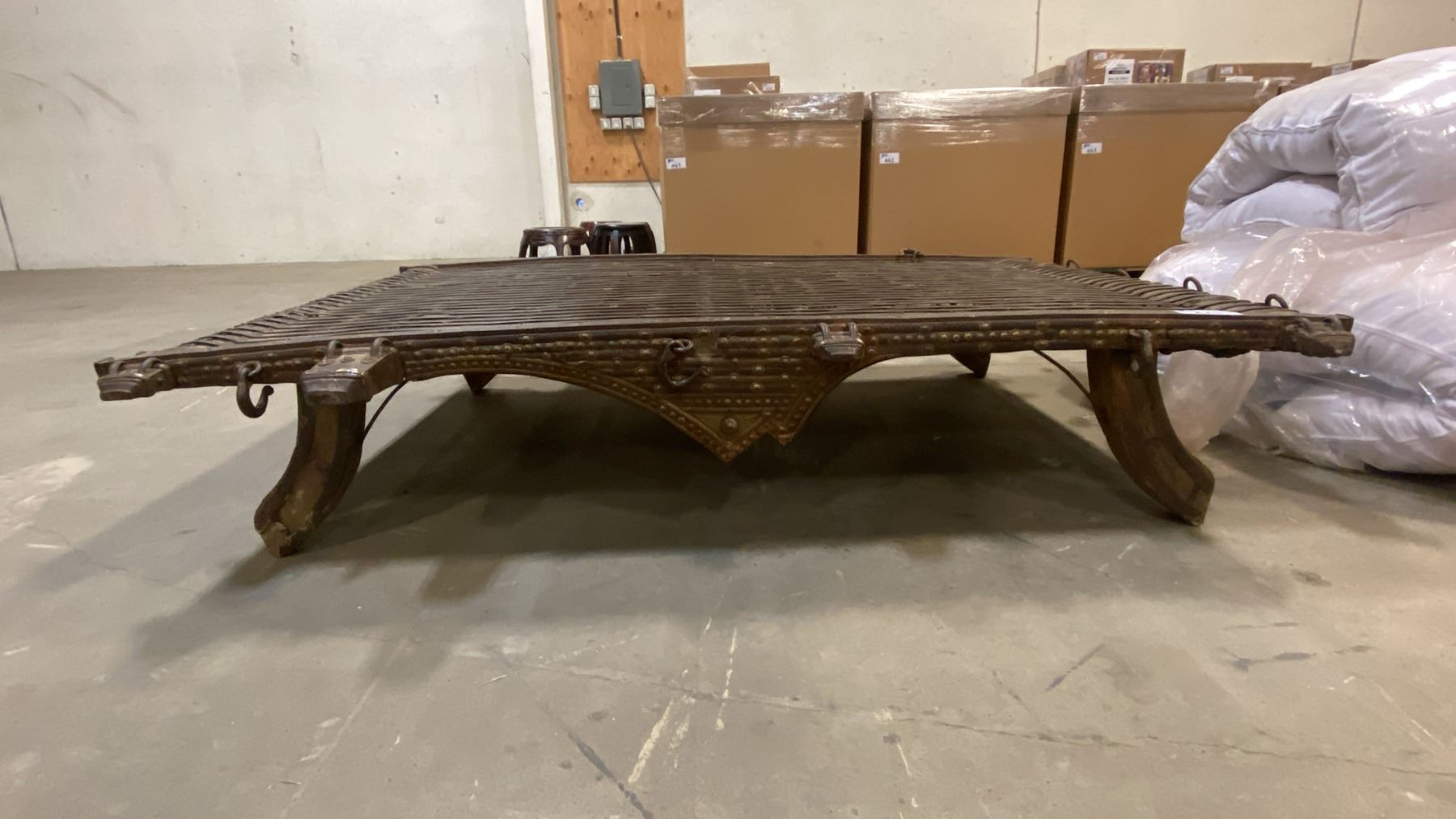 ANTIQUE WABI SABI INDIAN BULLOCK CART PLATFORM TABLE 1800"S ERA