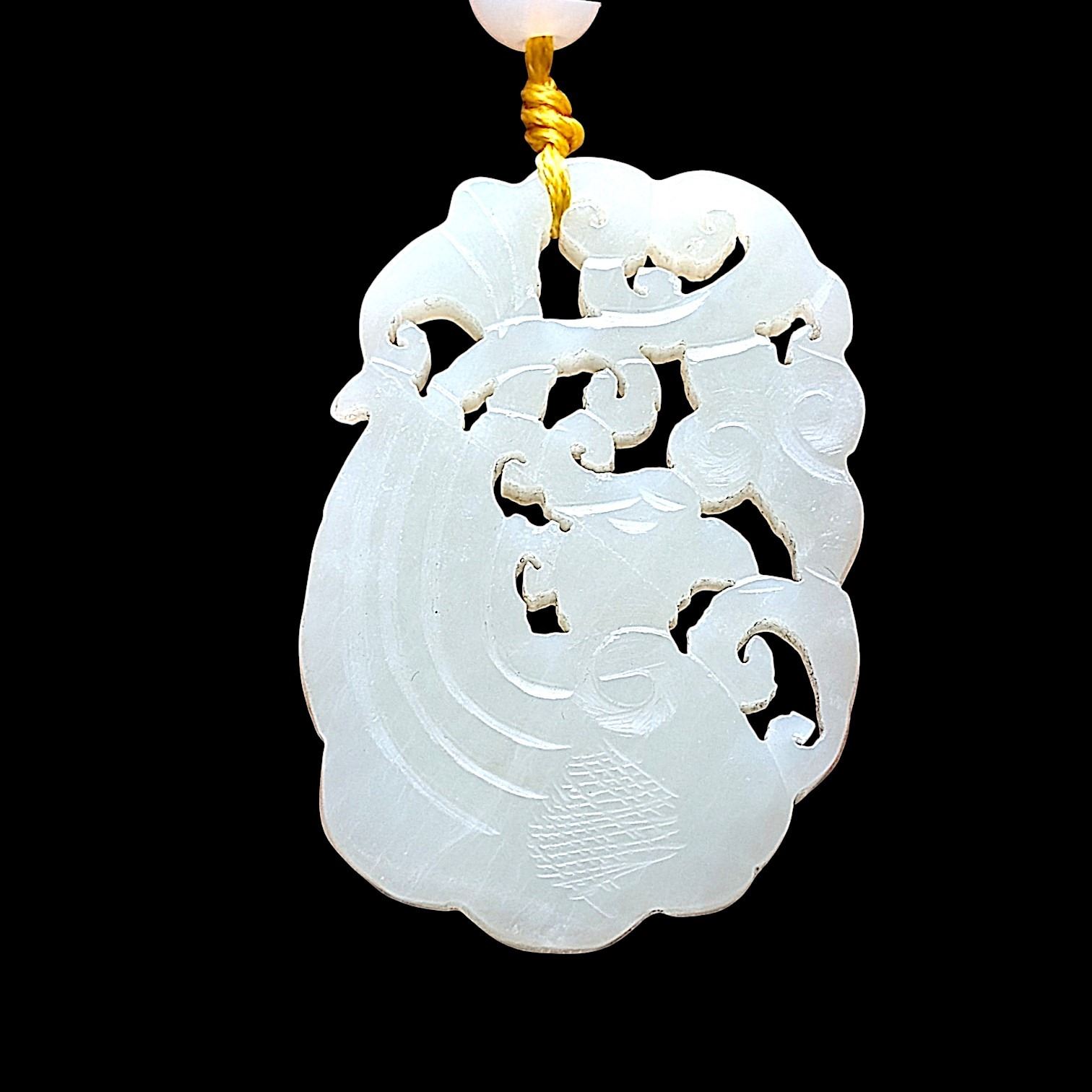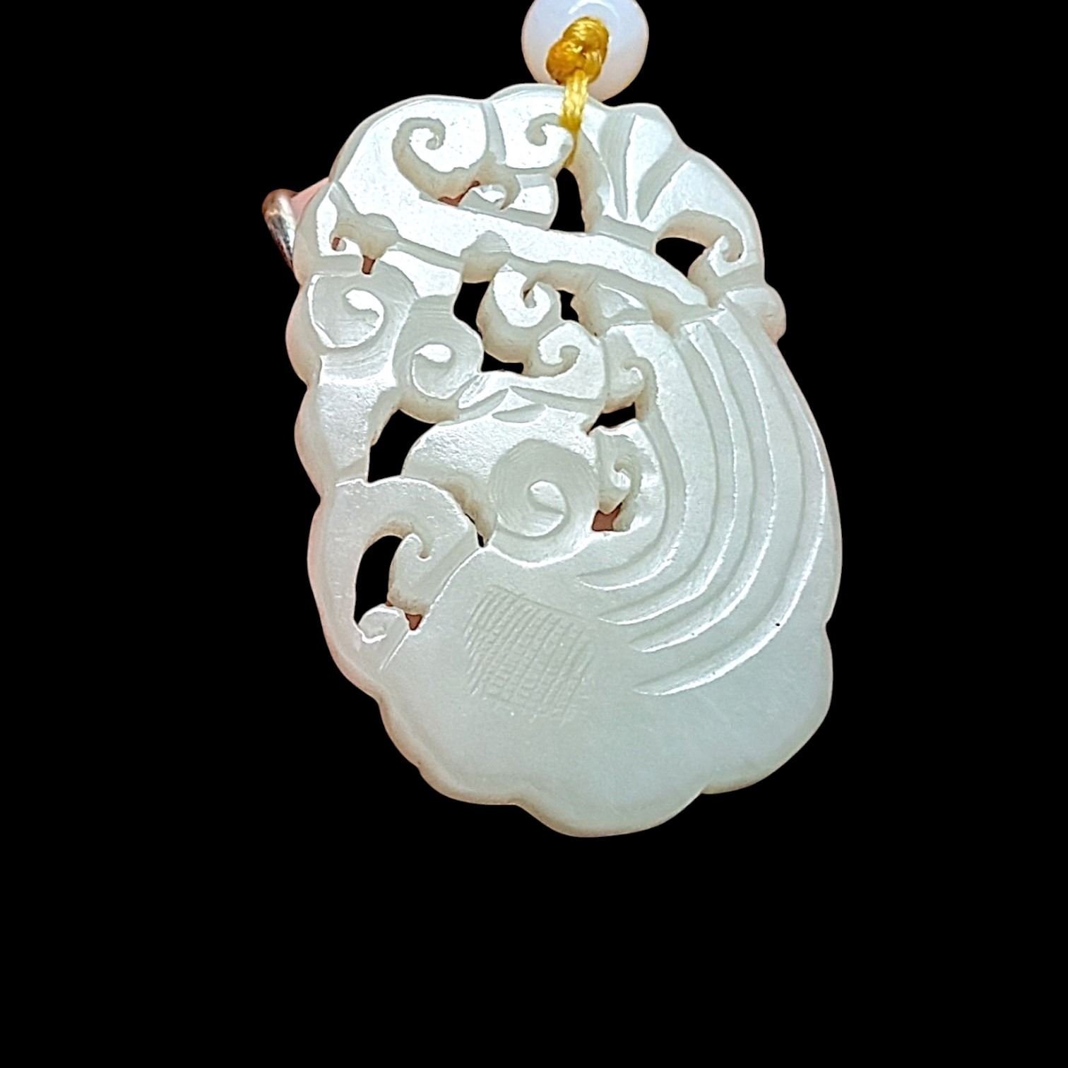 ANTIQUE WHITE JADE CLOUDS CARVING PENDANT