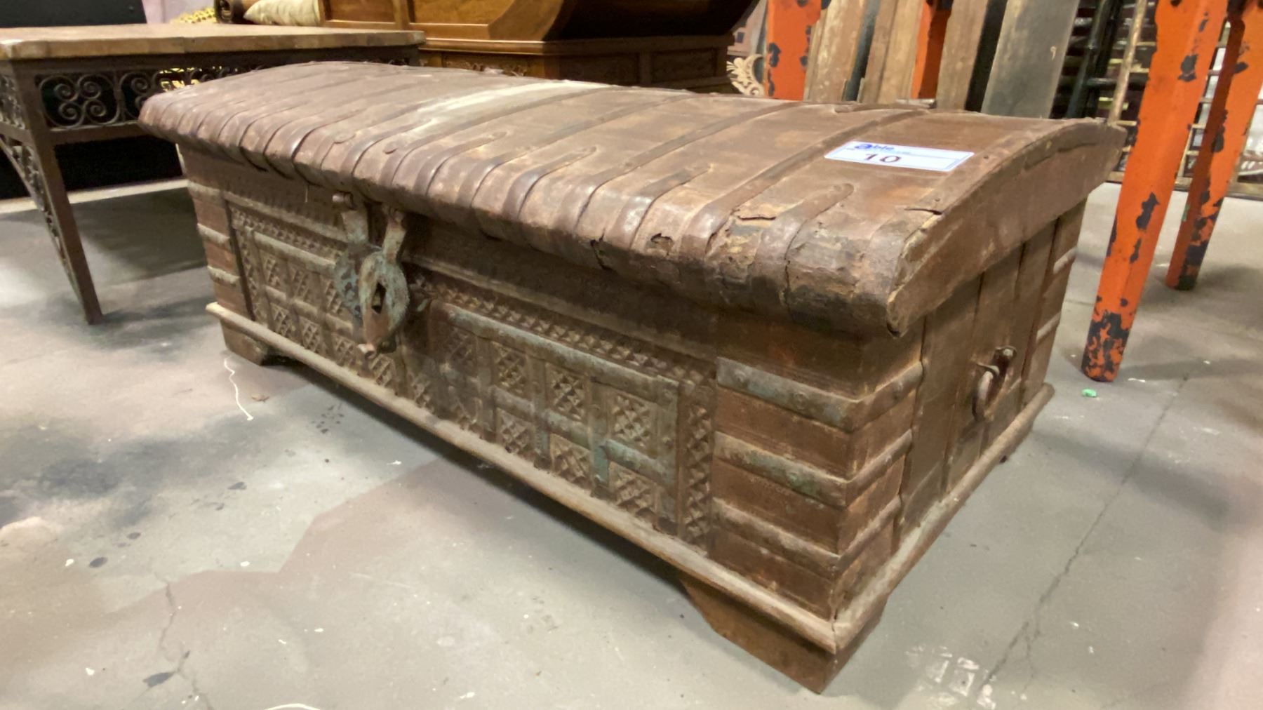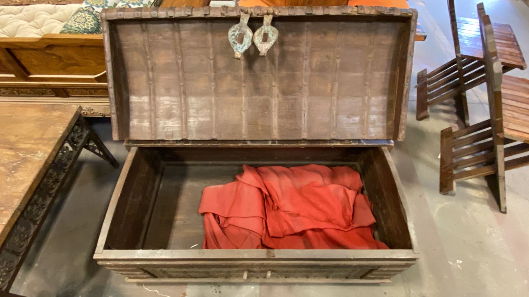 ANTIQUE WOOD WITH METAL BANDING ASIAN STEAMER TRUNK