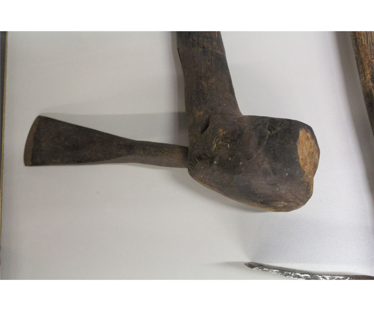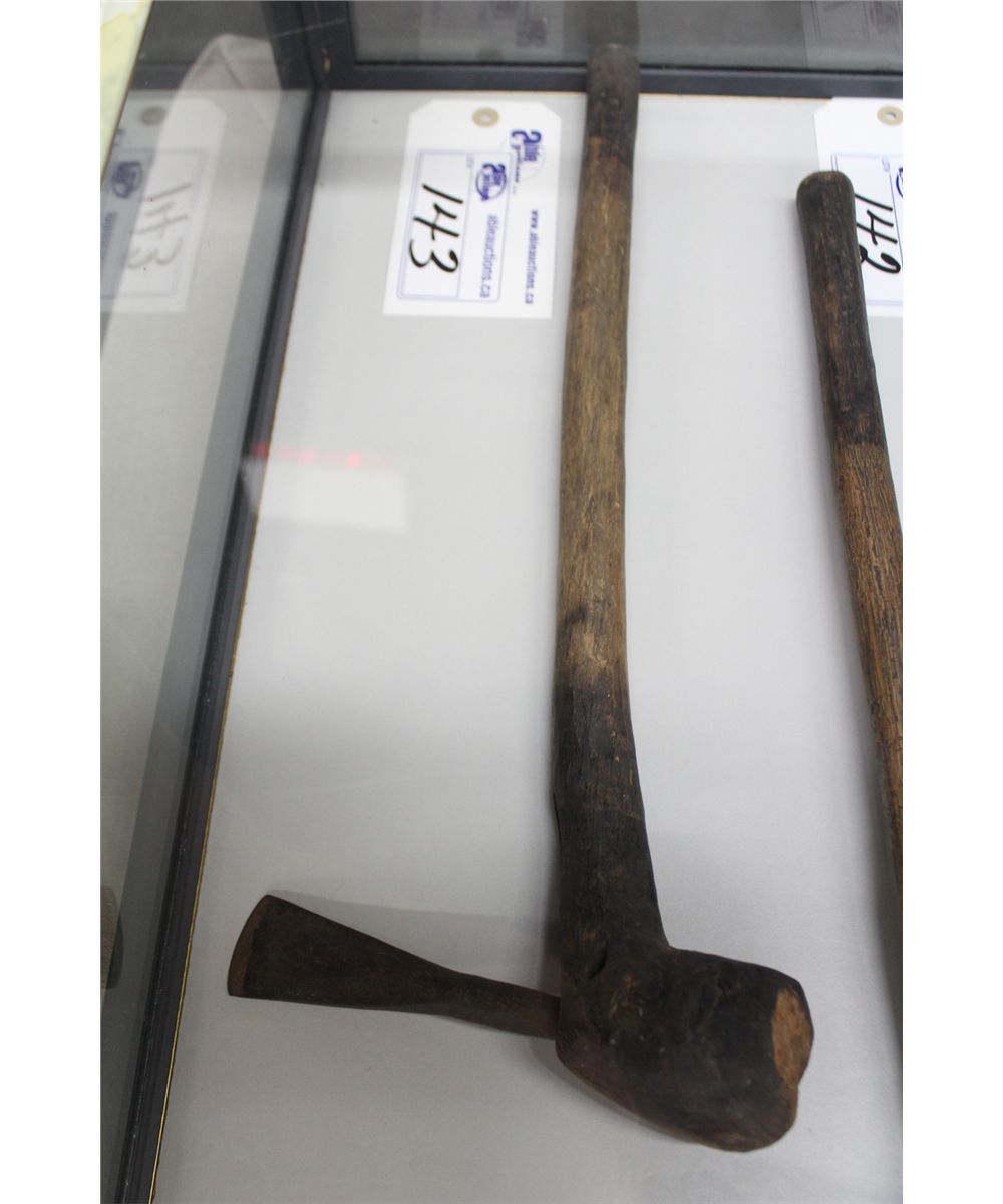 ANTIQUE WOODEN HANDLE METAL AXE 17" LONG