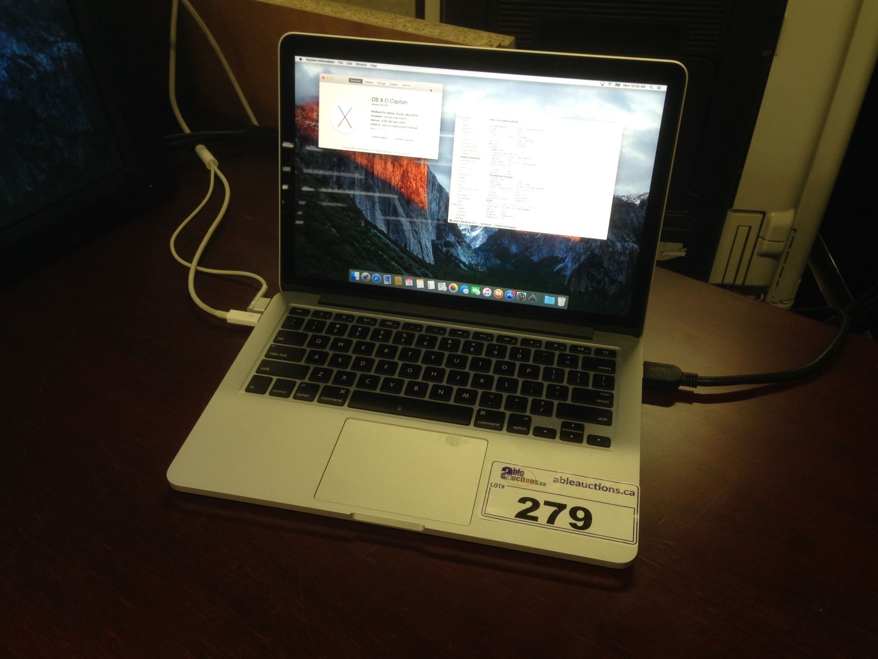 APPLE MACBOOK PRO RETINA 13'' EARLY 2015 NOTEBOOK COMPUTER, 2.9 GHZ INTEL CORE I5 PROCESSOR, 8 GB 1867 DDR3 RAM, INTEL IRIS 6100 1536 MB GRAPHICS, SERIAL NUMBER C02SJ1HJFVH6, WITH 27'' APPLE THUNDERBOLT DISPLAY WITH MAGSAFE CHARGING, 3X USB, FIREWIRE 800, THUNDERBOLT AND ETHERNET