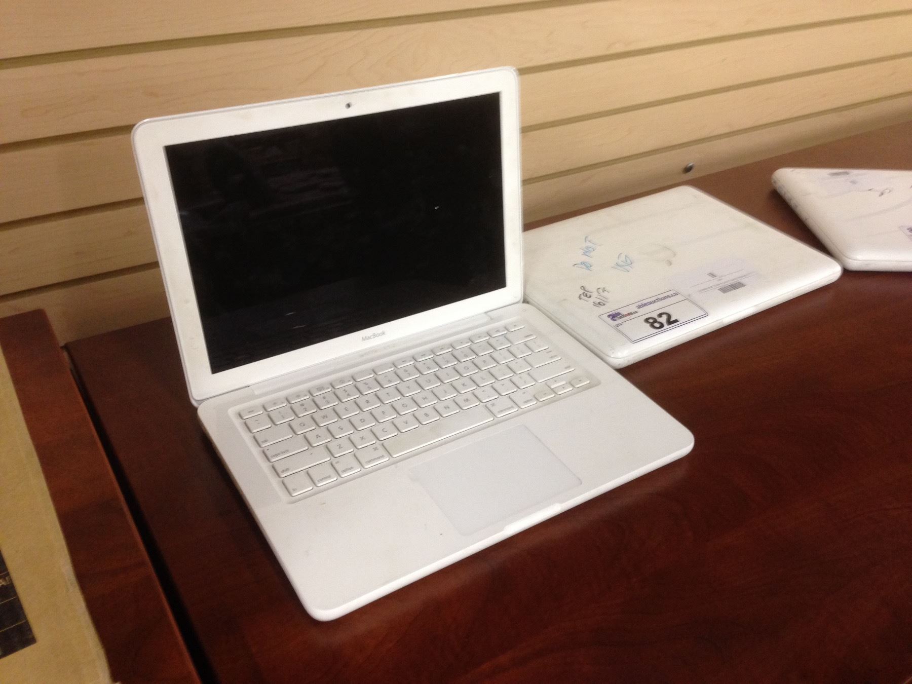 APPLE WHITE MACBOOK LAPTOP, NO HARD DRIVE, NO BATTERY, NO POWER SUPPLY, CONDITION UNKNOWN